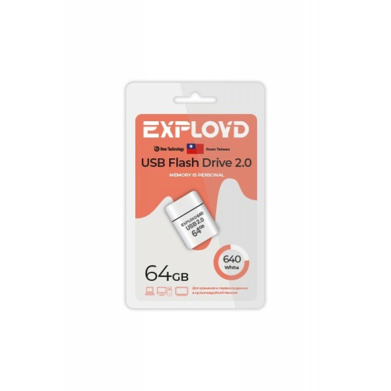Флеш-накопитель USB 2.0, 64GB Exployd 640, белый (EX-64GB-640-White)
