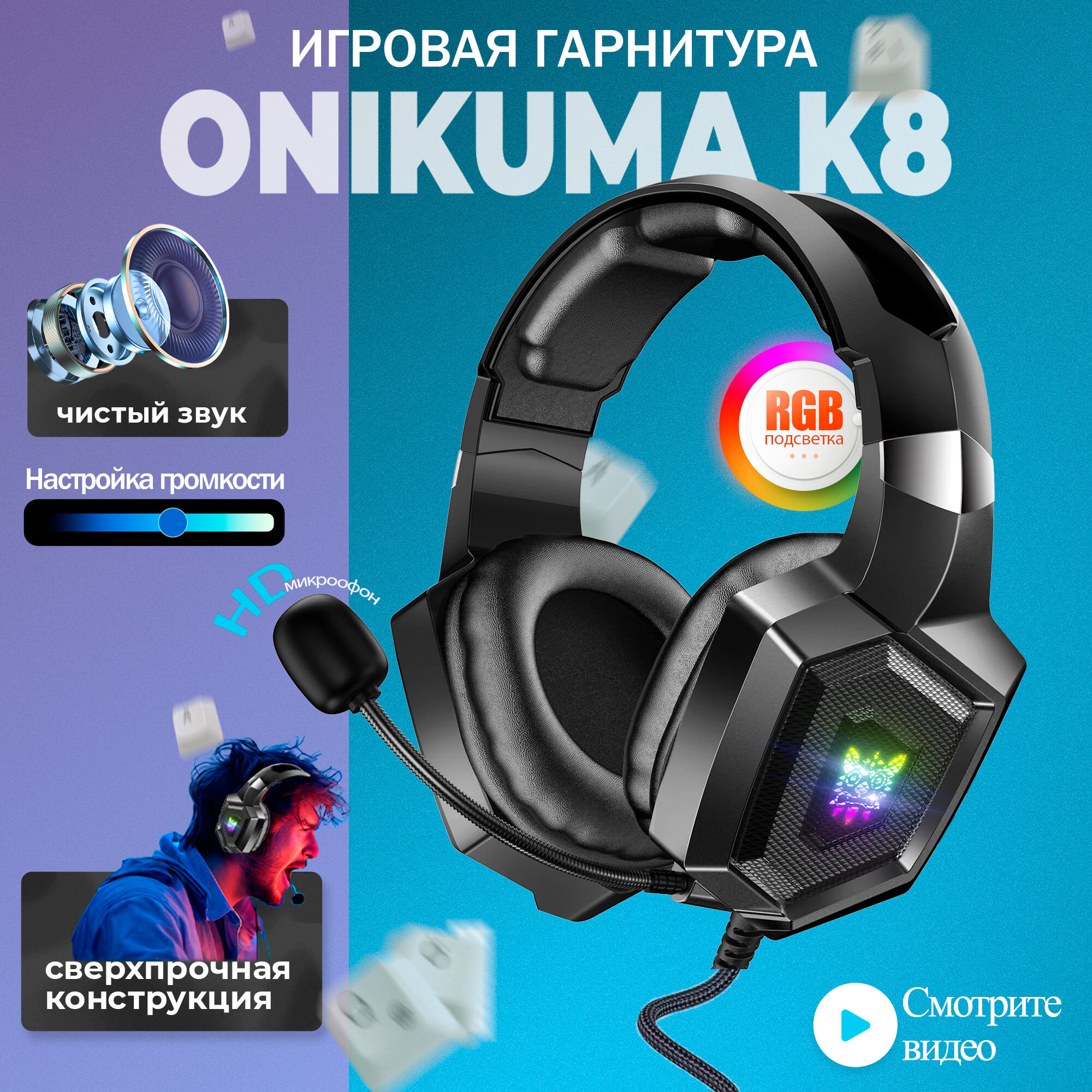 Купить Игровые проводные наушники Onikuma K8 с RGB подсветкой, черные