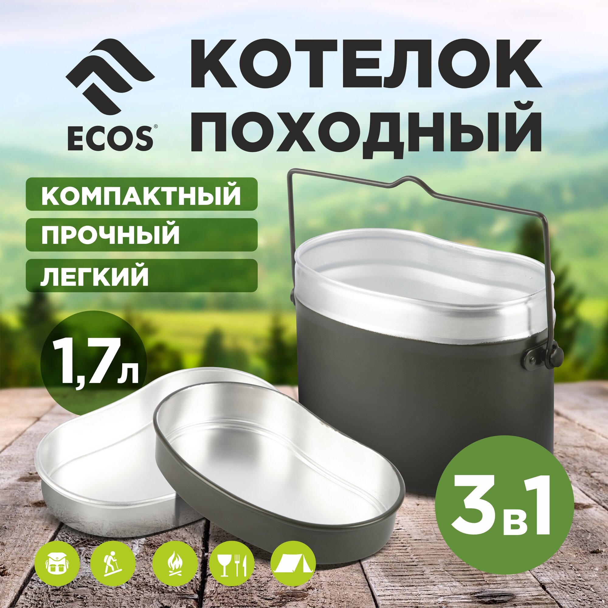Котелок походный Ecos, с крышкой, алюминий, 1,7 л