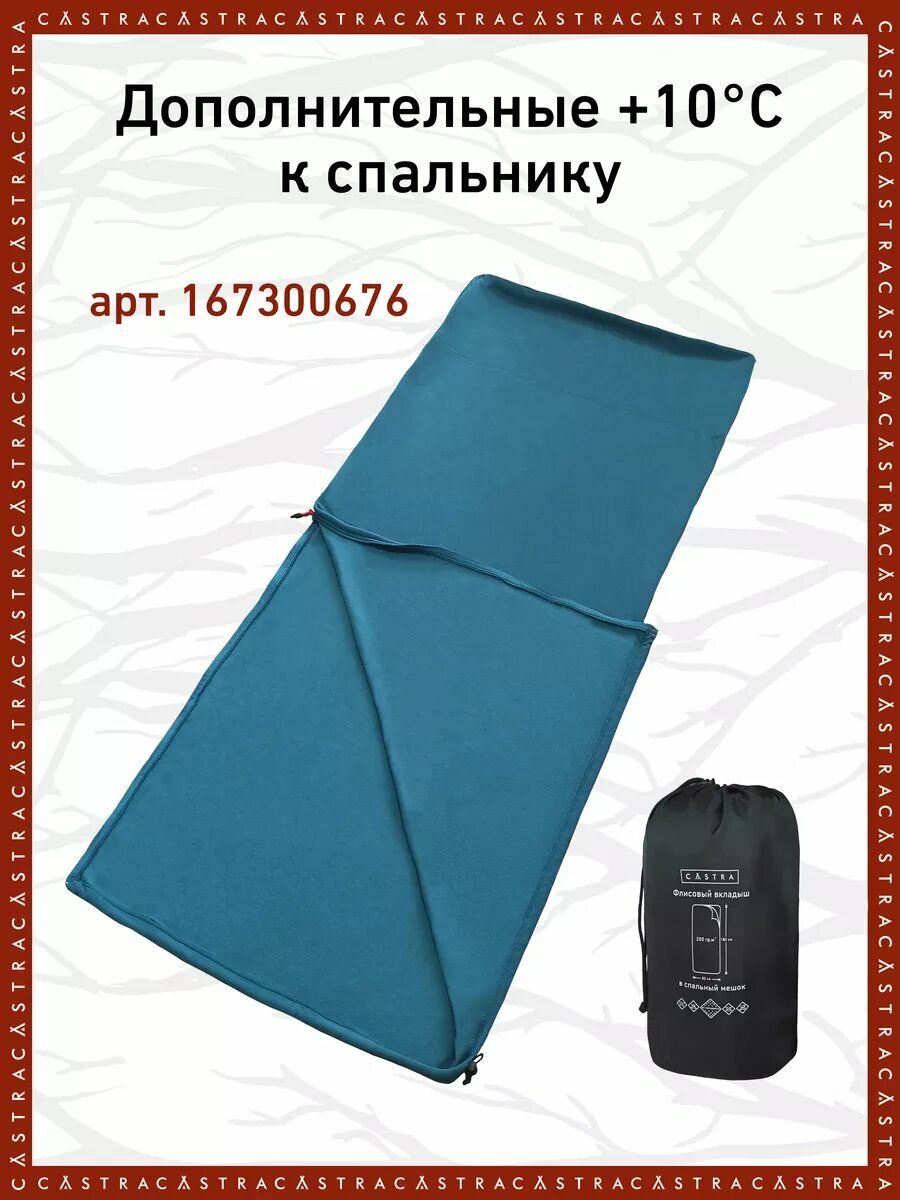 Флисовый вкладыш "CASTRA" для спального мешка, 180х80, с молнией, голубой интересное: