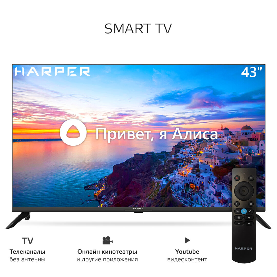 В новую квартиру купила себе и новый телевизор, денег после покупки квартиры было немного, но хватило на HARPER модель 43U750TS, диагональ 43. Очень понятное управление на базе Яндекс, со встроенной Алисой. Цвета очень яркие, красивые, сочные, даже не знаю как описать. Звук тоже отличный,