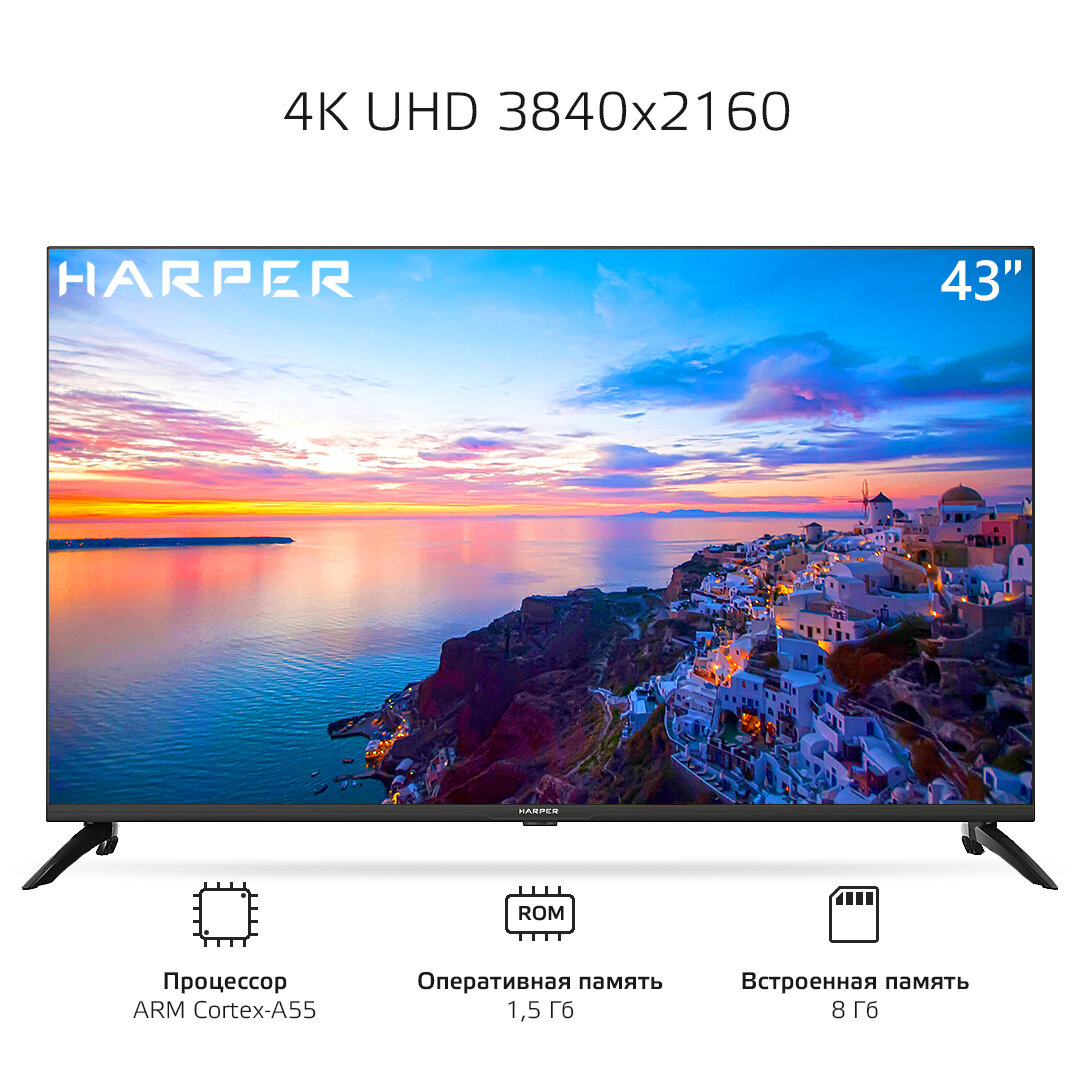 Телевизор Harper 43U750TS / 4K UHD / HDR / Smart TV / Wi-Fi и Bluetooth / 60 Гц, черный интересное: