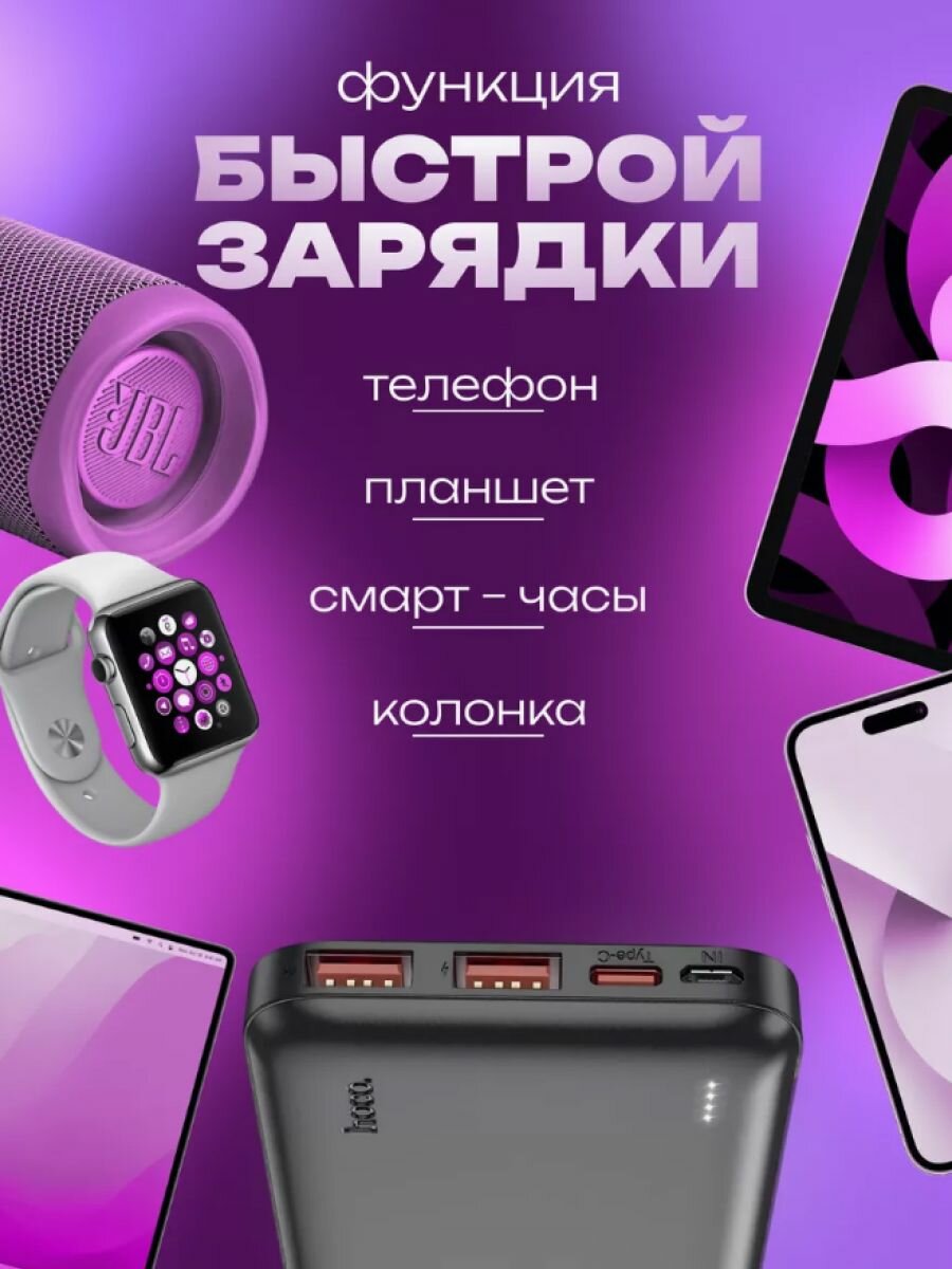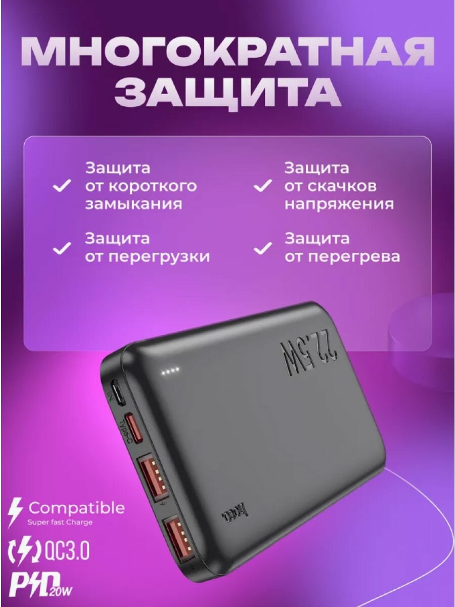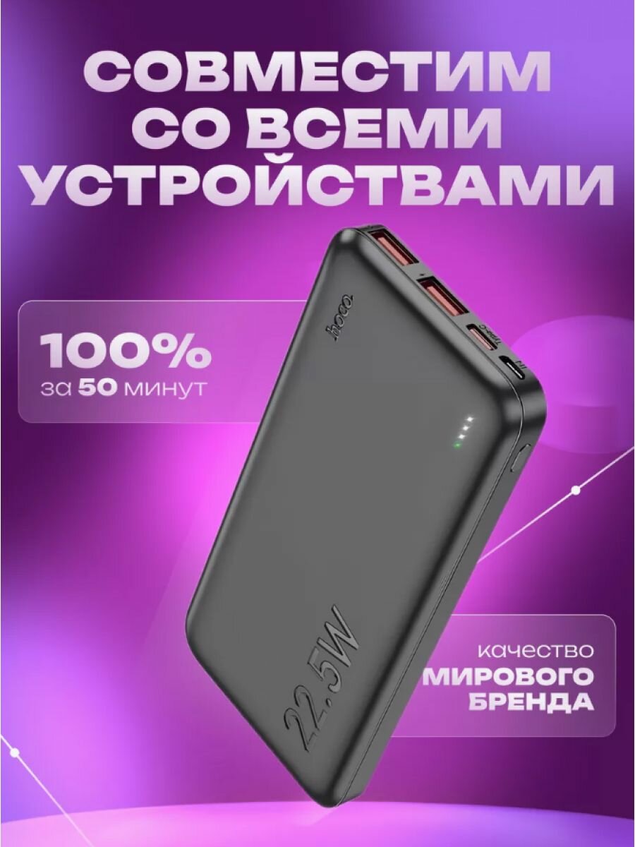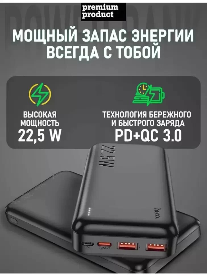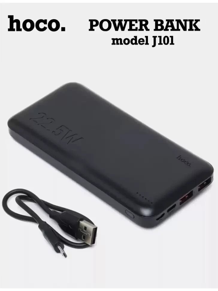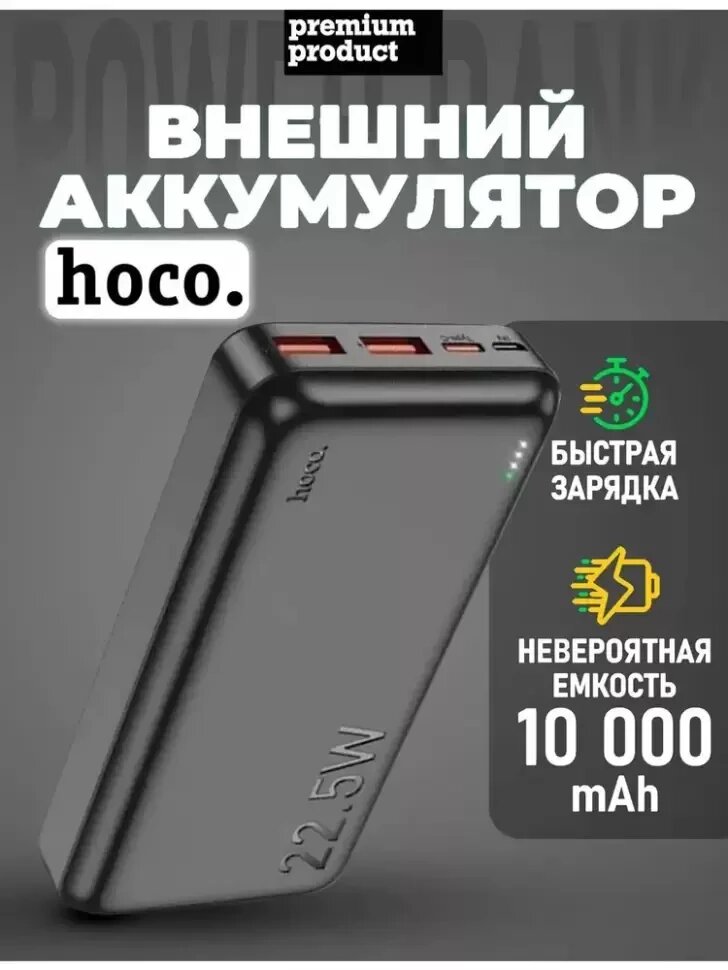 Внешний АКБ HOCO J101 Astute 10000 mAh, 2xUSB, 1xUSB-C, 3А, QC 3.0, PD20W, Li-Pol (черный)