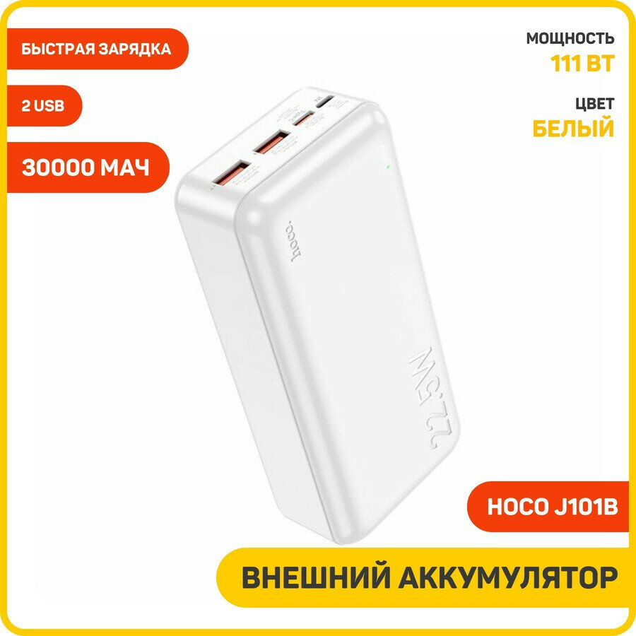 Внешний аккумулятор ( для Power Bank) Hoco J101B 30000mAh (2USB/Type-C) (белый)