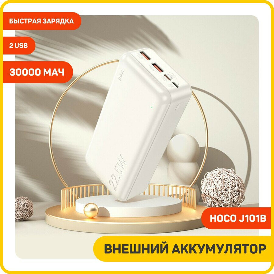 Внешний аккумулятор - Hoco J101B, 30000мАч, 2USB Type-C, белый, 1 шт.