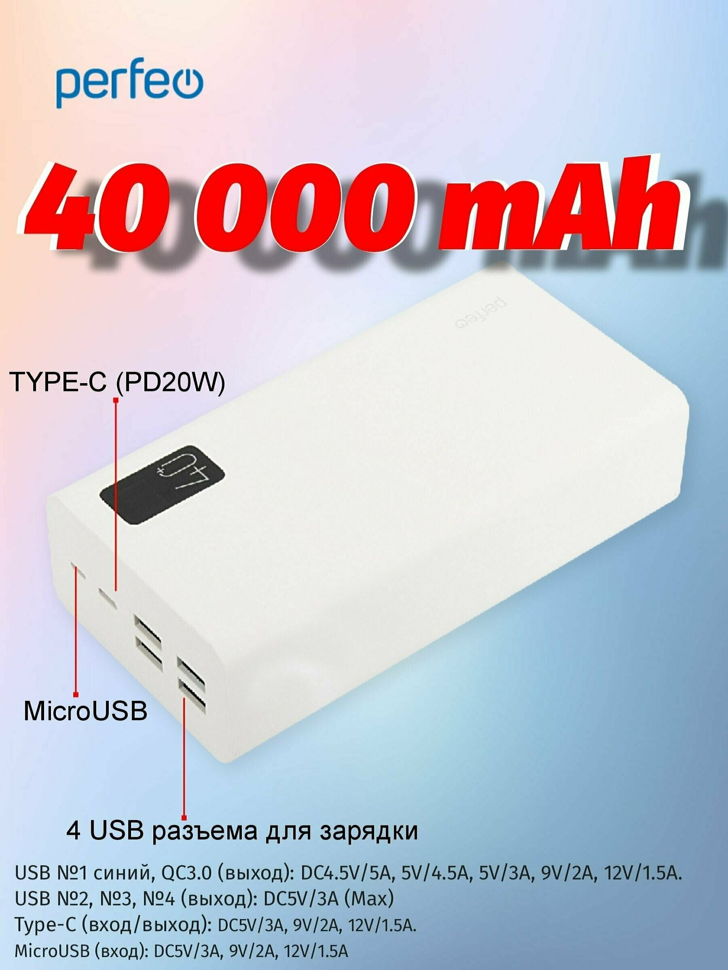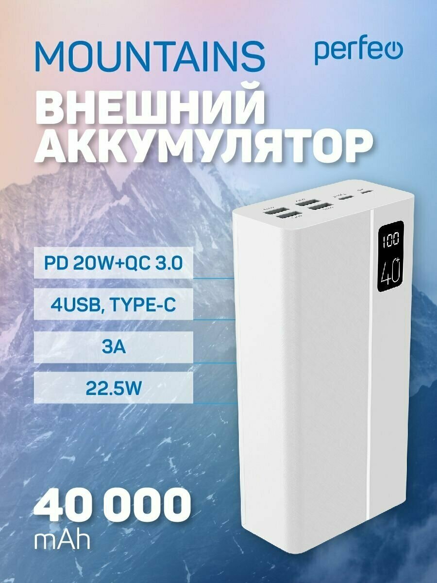 Power bank PERFEO (PF_D0160) MOUNTAINS - 40000 mAh, белый интересное: