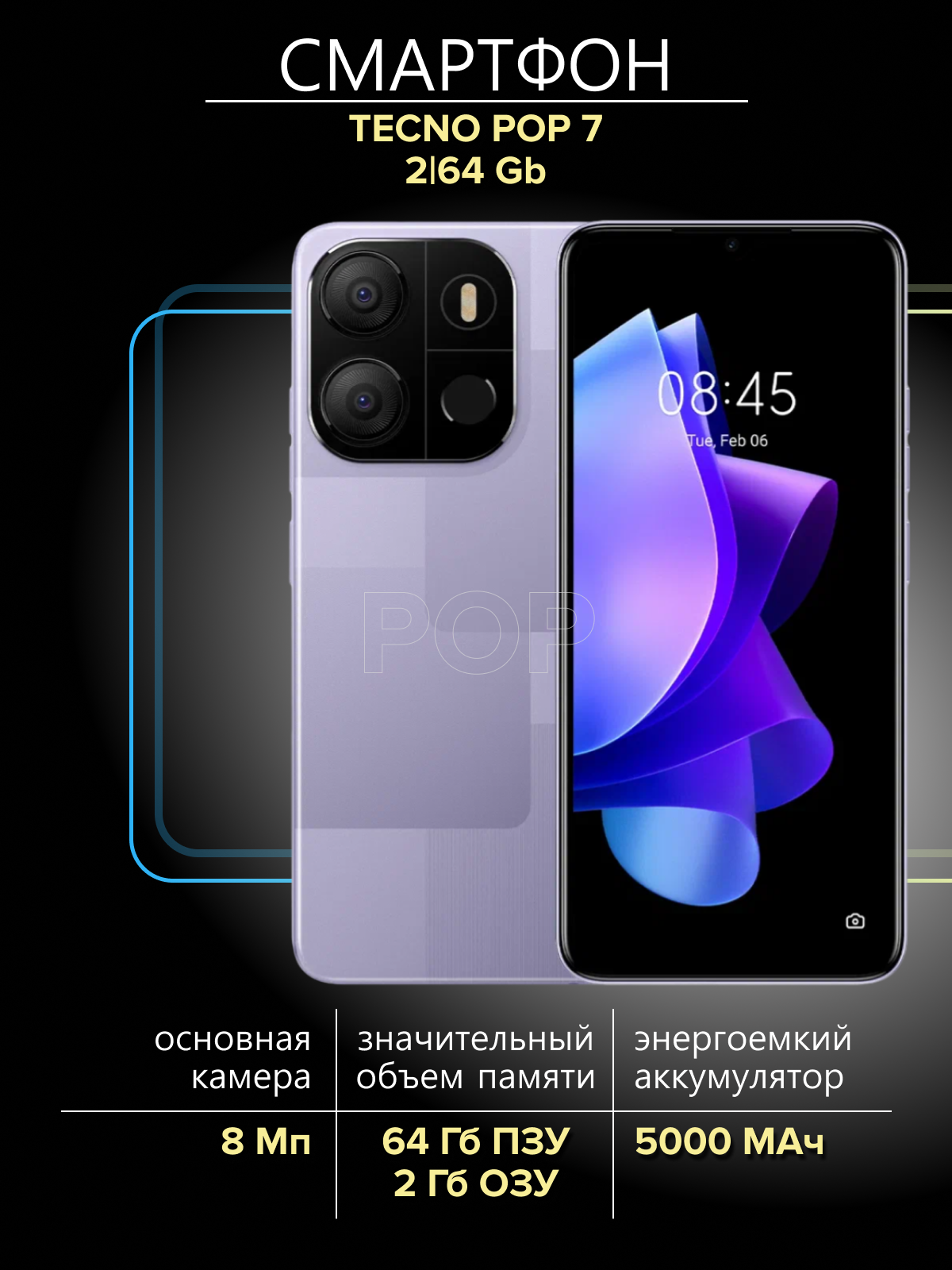 Смартфон TECNO POP 7 2/64 ГБ, 2 nano SIM, фиолетовый