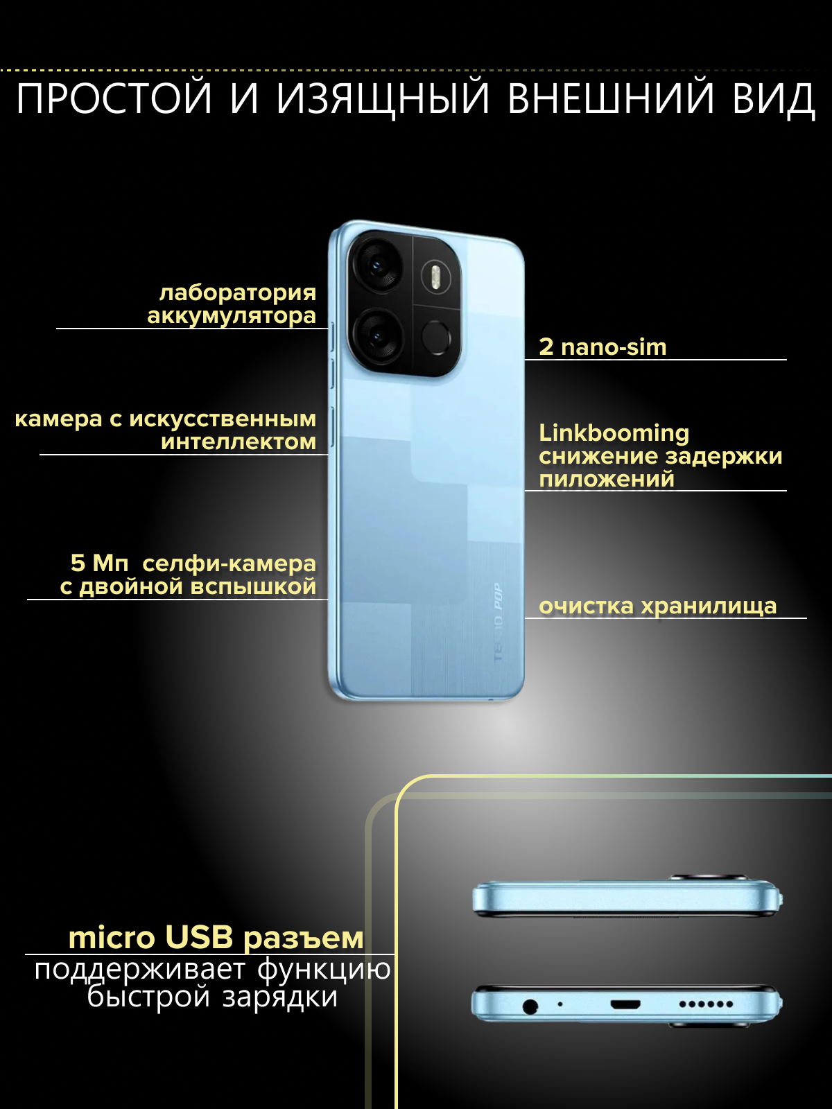 СохранитьСмартфоны Android Tecno Смартфон Tecno Pop 7 2/64Gb Синий Синий интересное:
