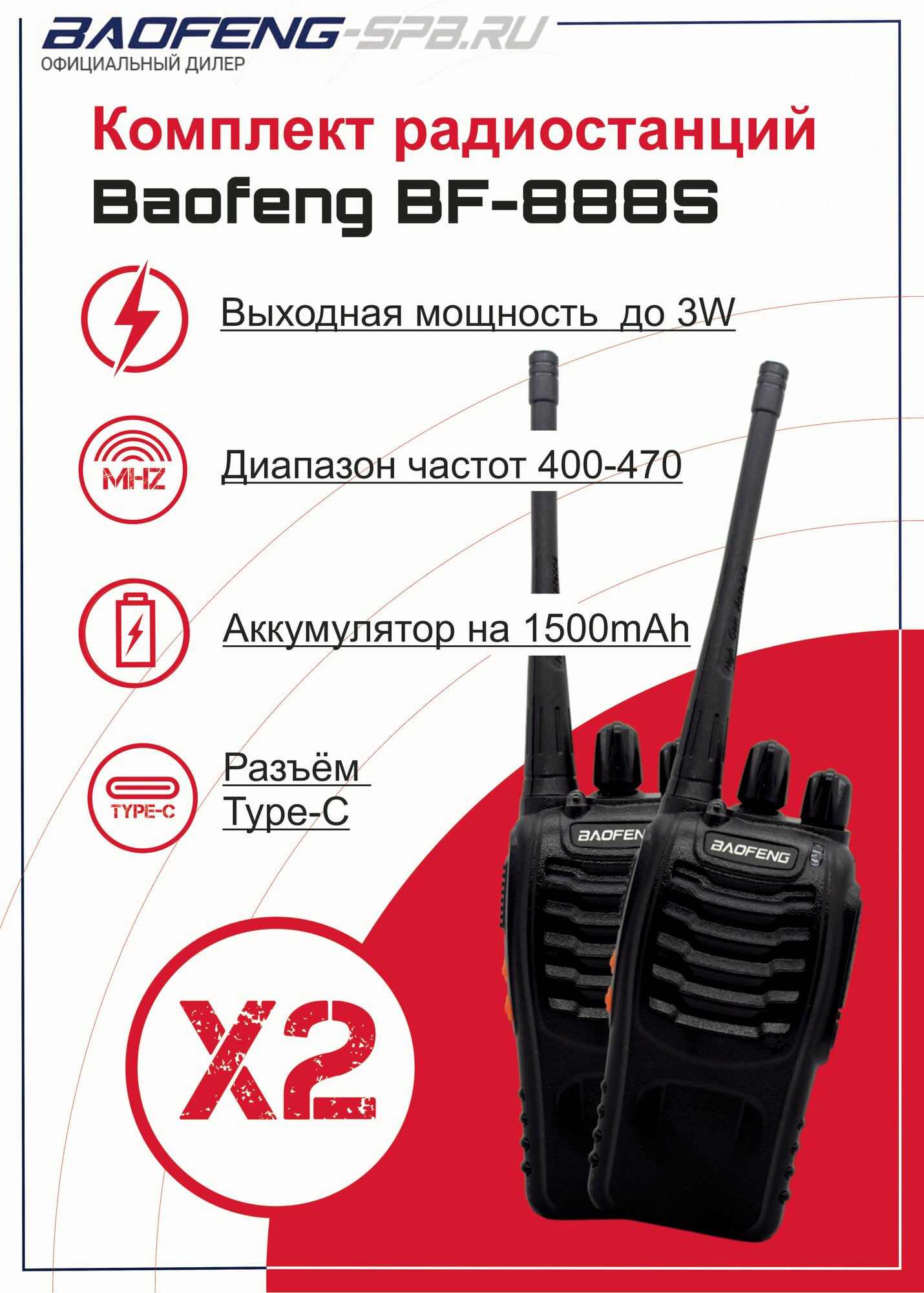 Комплект раций Baofeng BF-888S с антенной, 2 штуки, Type-C интересное: