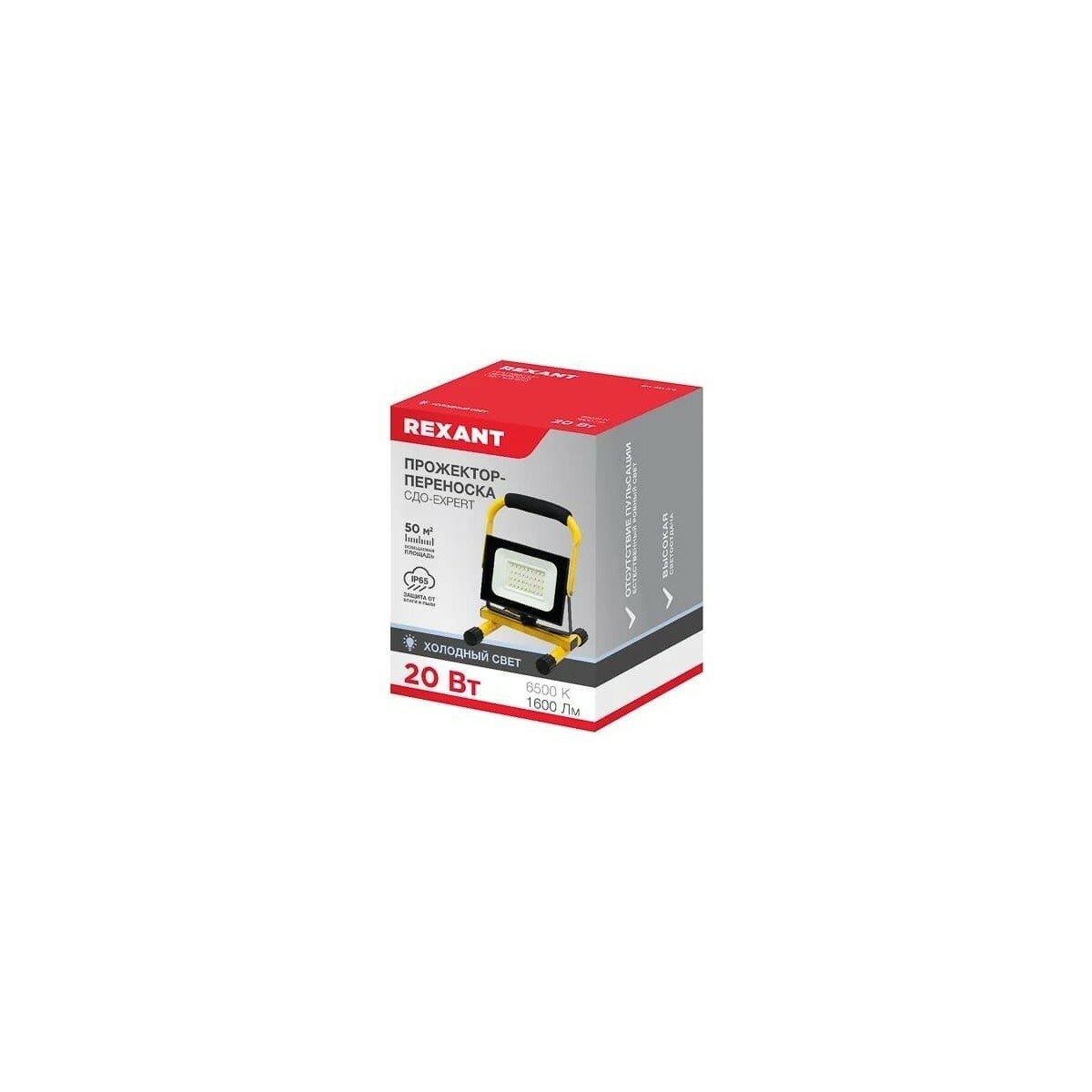 Прожектор-переноска Rexant, СДО-EXPERT, 20 Вт, 6500 К, IP65, 1600 Лм, со шнуром 0.5м и евровилкой, 605-020