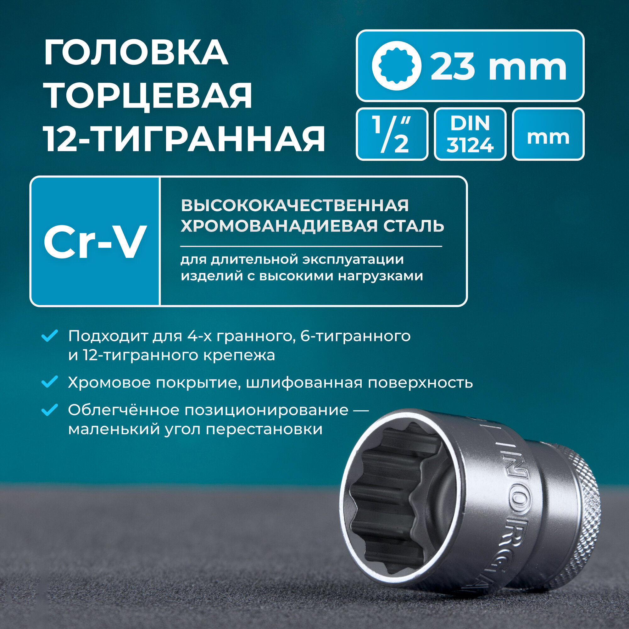Головка торцевая 1/2" NORGAU Industrial 12-гранная 23 мм с шариковой фиксацией, DIN 3124