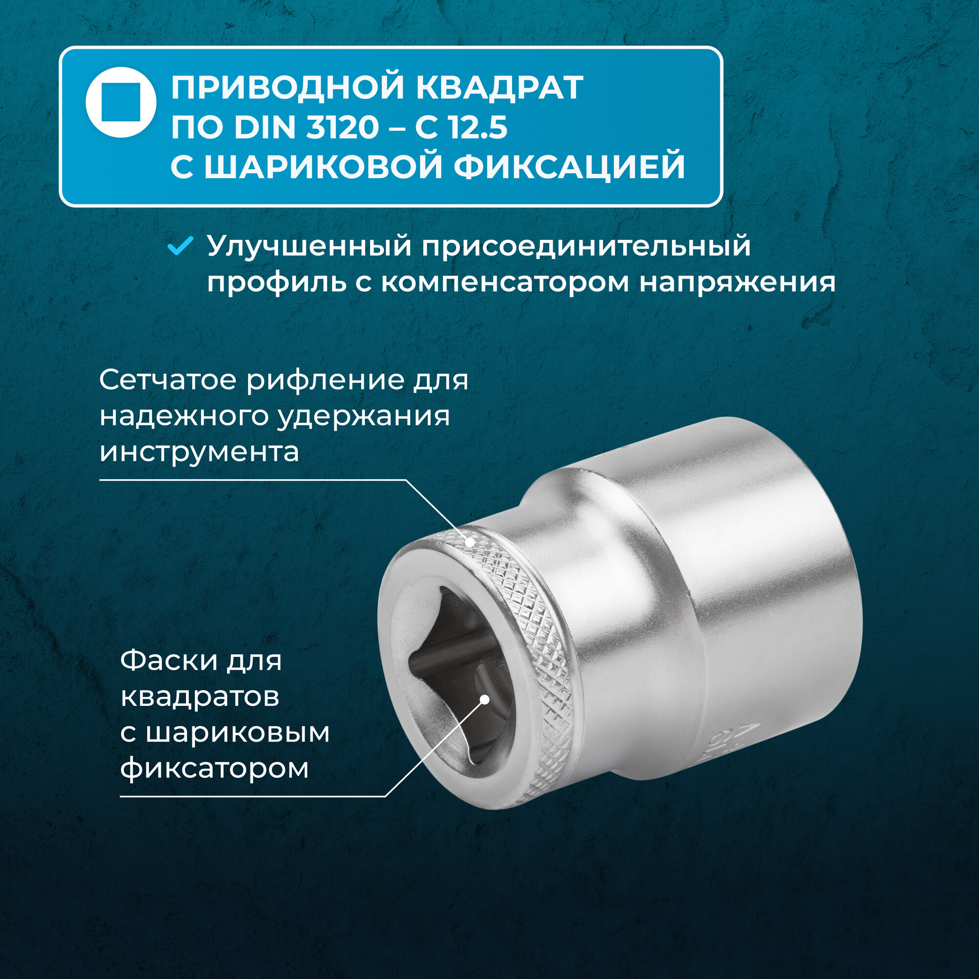 Головка на 23 NORGAU Industrial под квадрат 1/2 двенадцатигранная с шариковой фиксацией и шлифованной поверхностью, DIN 3124 интересное: