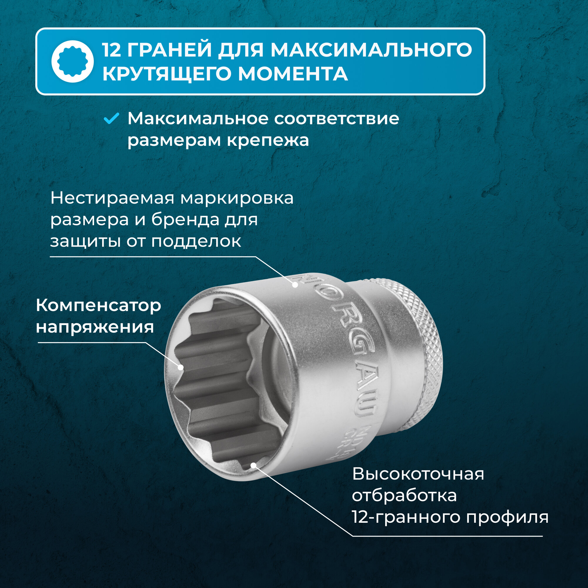 Головка на 27 NORGAU Industrial под квадрат 1/2 двенадцатигранная с шариковой фиксацией и шлифованной поверхностью, DIN 3124 интересное: