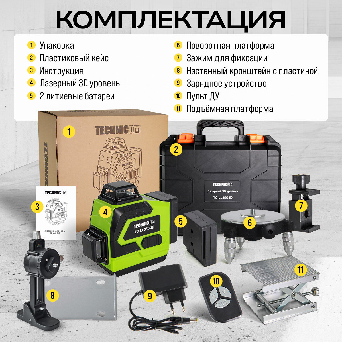 TECHNICOM Лазерный 3D уровень TC-LL35G3D