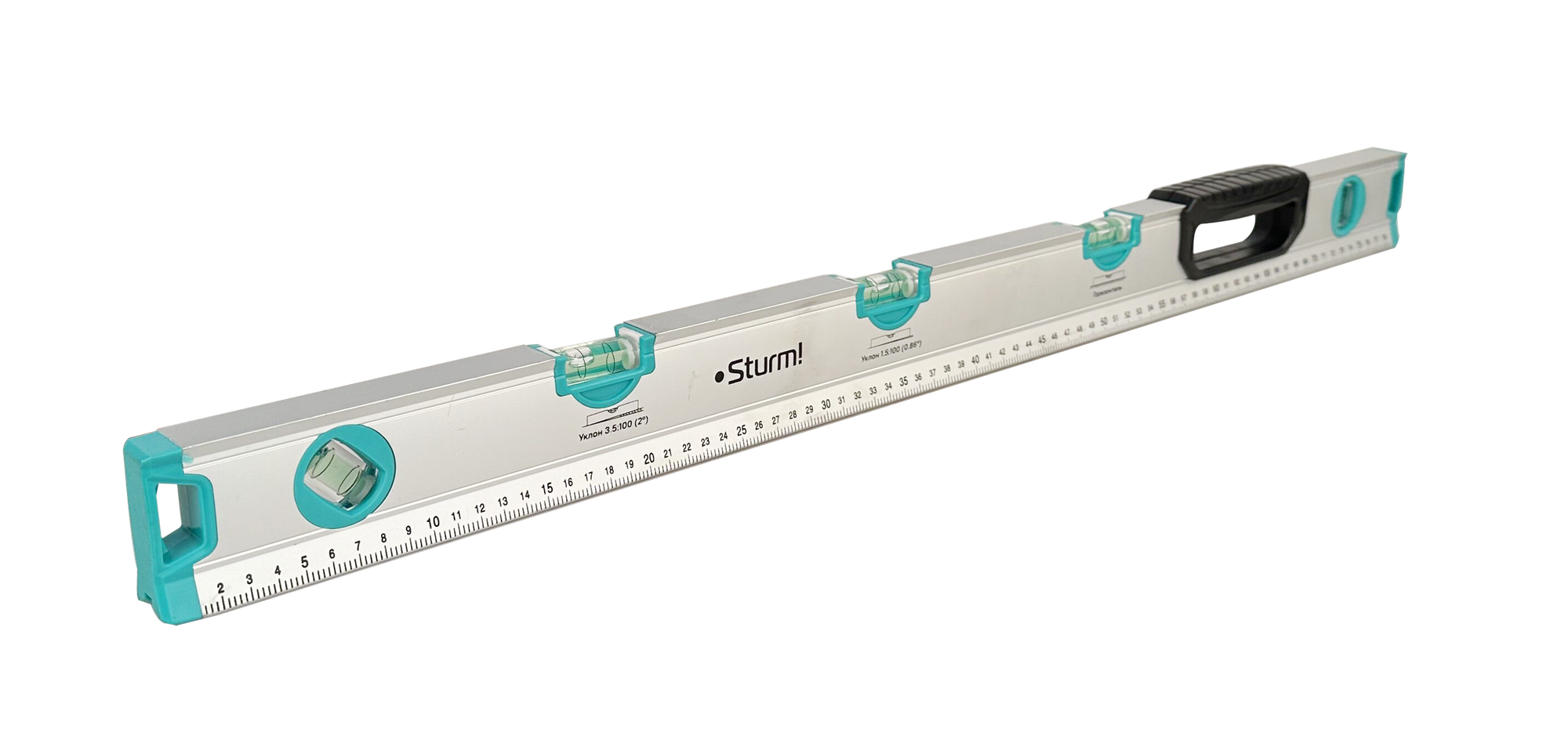 Уровень 800мм, 5 глазков, углы 0/1.5/3.5/45/90°, точность 1мм/м, Sturm!