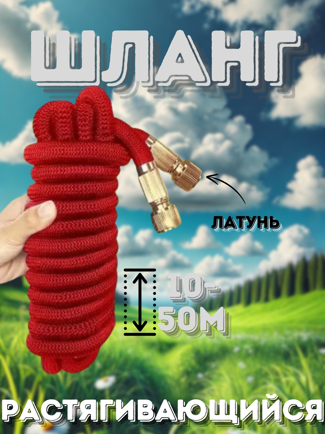 СохранитьШланг поливочный удлиняющийся с распылителем - 10-50 метров, красный интересное: