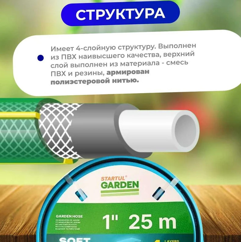 Шланг поливочный армированный 1" 25м STARTUL GARDEN SOFT TOUCH 4 слоя (ST6040-1-25)