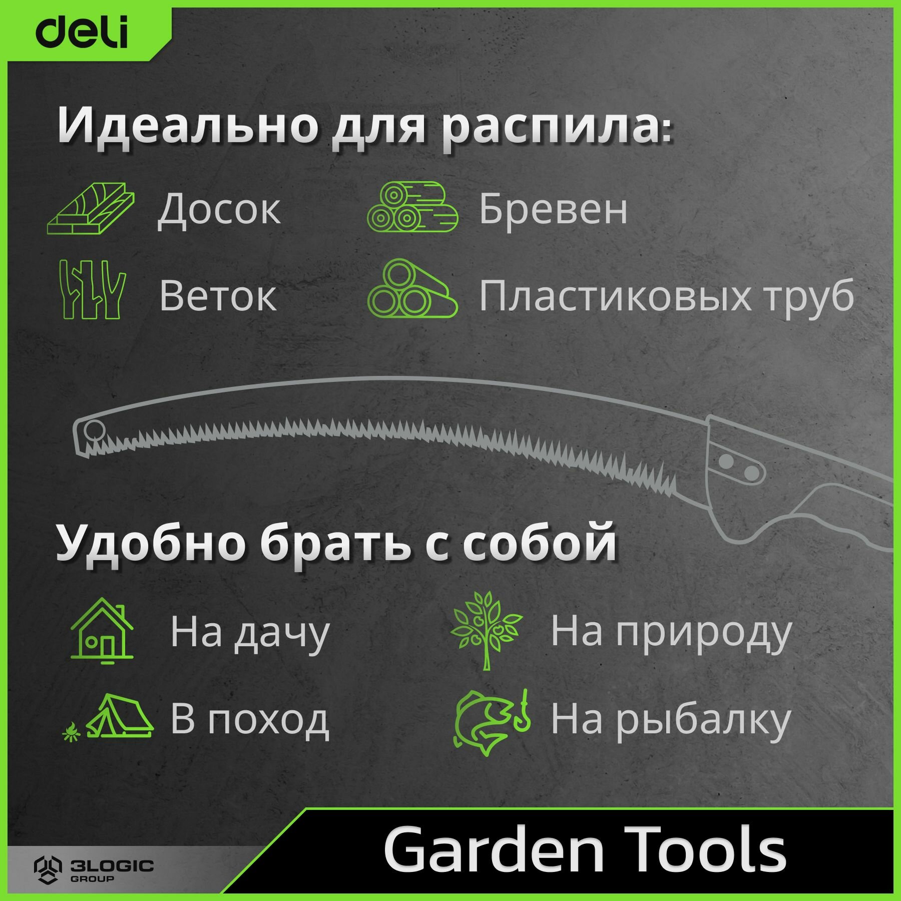 Садовая пила (ножовка) удлиненная по дереву Deli DL580933 330мм (7 зубьев на дюйм, 3D заточка, обрезиненная ручка, двухрядное распределение зубцов)