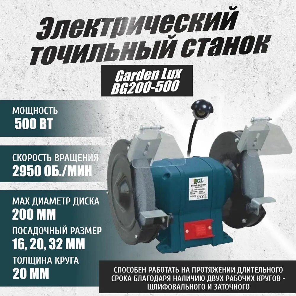 Заточной станок Gardenlux BG200-500 Круг 200мм. 500Вт. Лампа интересное: