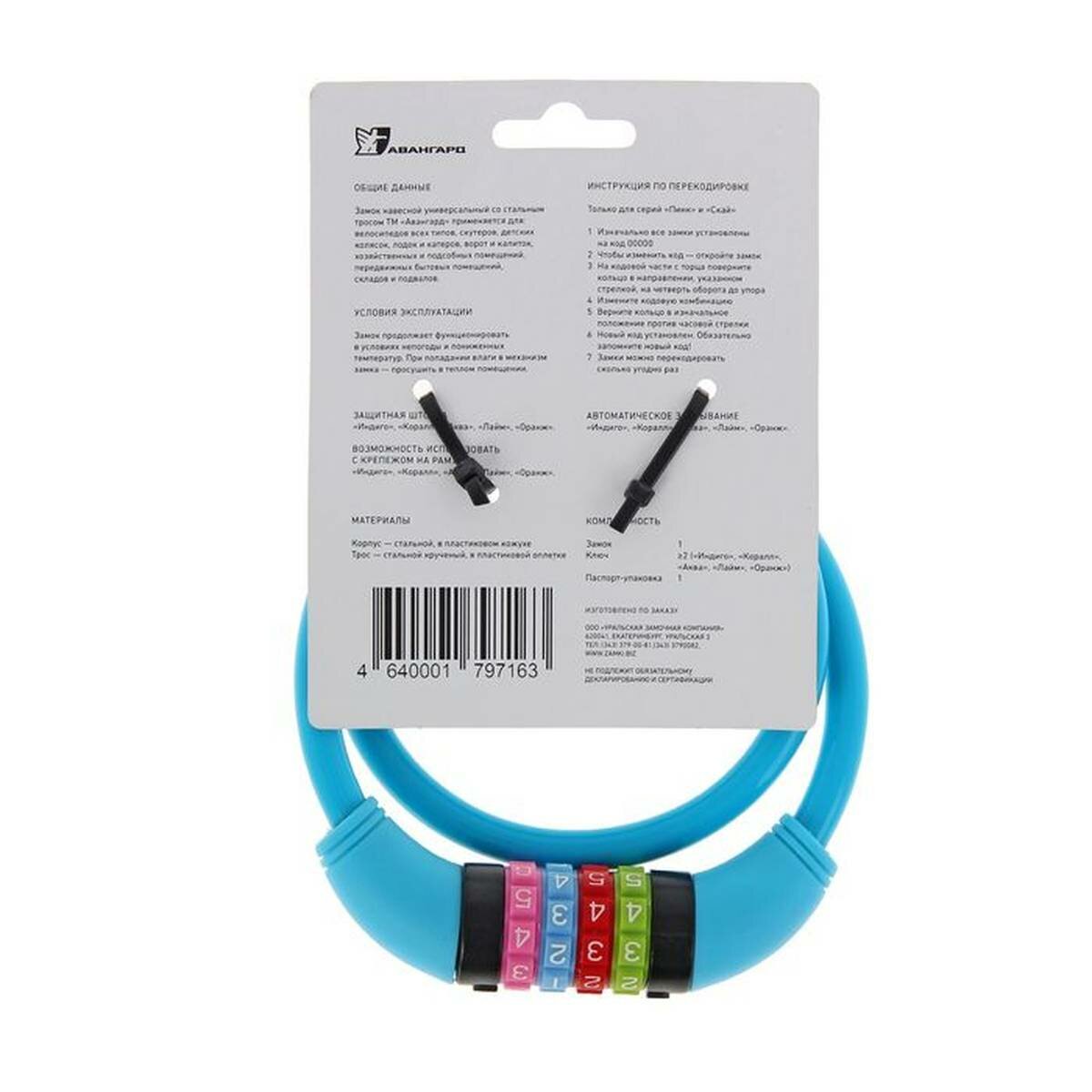 Замок велосипедный кодовый противоугонный авангард ВС-Т10К (650 мм) Техно Скай тросовый