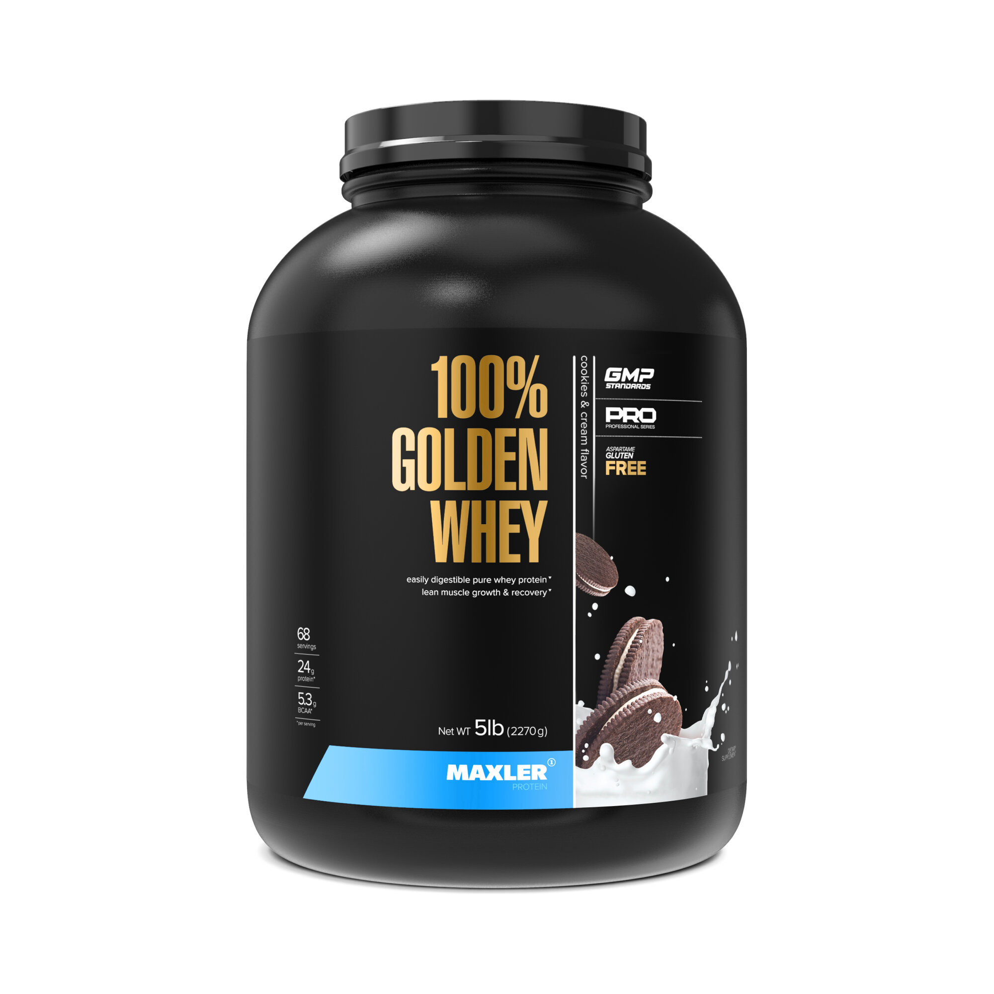 Купить Чистый сывороточный белок премиум класса 100% Golden Whey Protein 2270 гр 5 lb (Maxler) Печенье-крем
