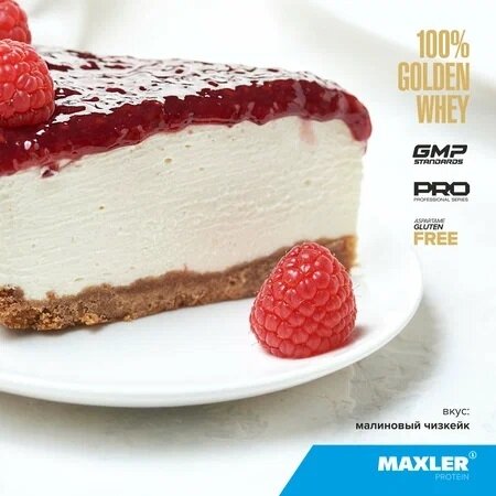 Купить Чистый сывороточный белок премиум класса 100% Golden Whey Protein 908 гр 2 lb (Maxler) Малиновый чизкейк