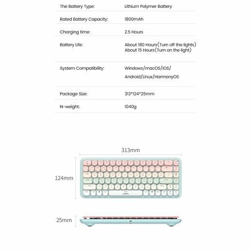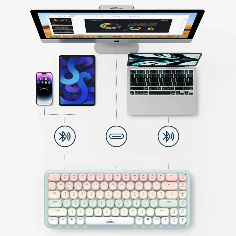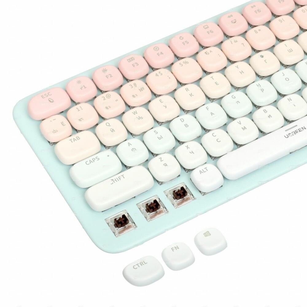 Клавиатура механическая UGREEN KU101 (15227) FUN + Mechanical Keyboard USB-C & Bluetooth мятная/розовая