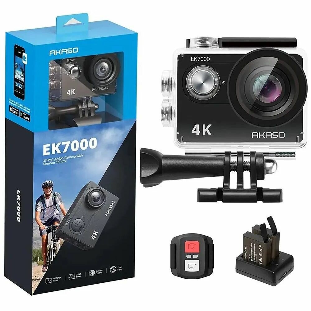 Экшн-камера AKASO EK7000, 3840x2160, 1050 мА·ч, чёрный