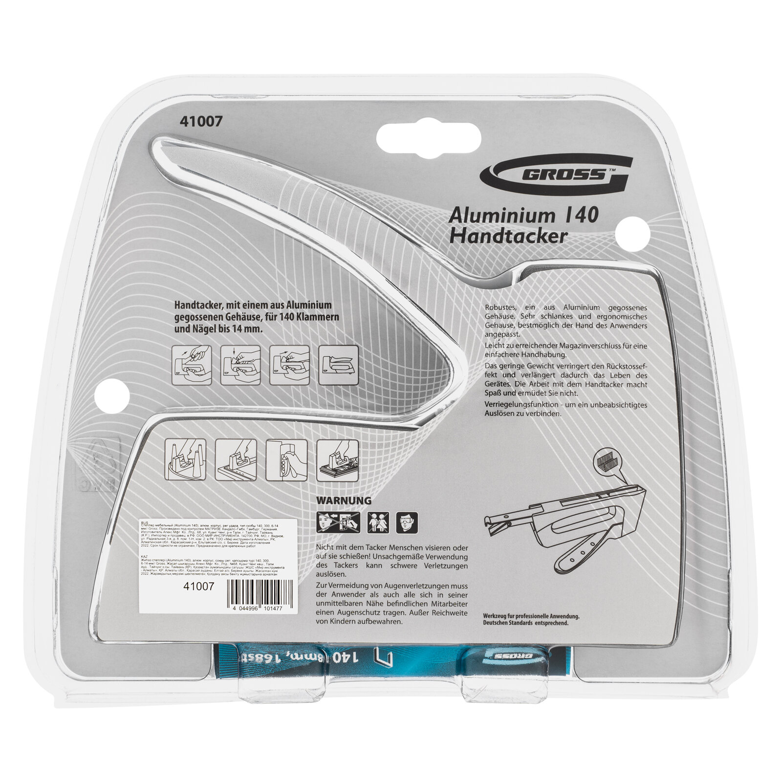 Строительный степлер Gross, тип 140/300 под скобы 6 - 14 мм, алюминиевый корпус