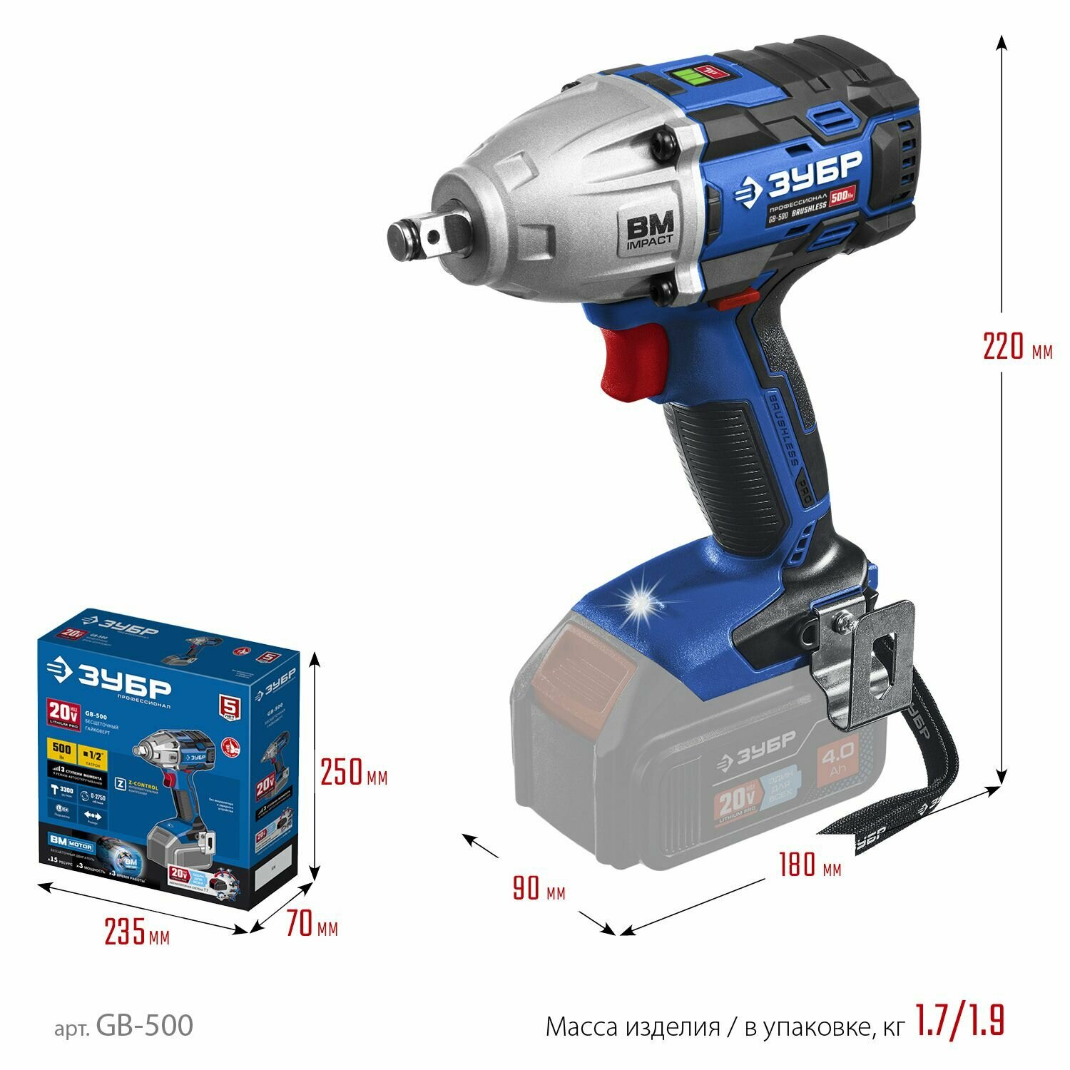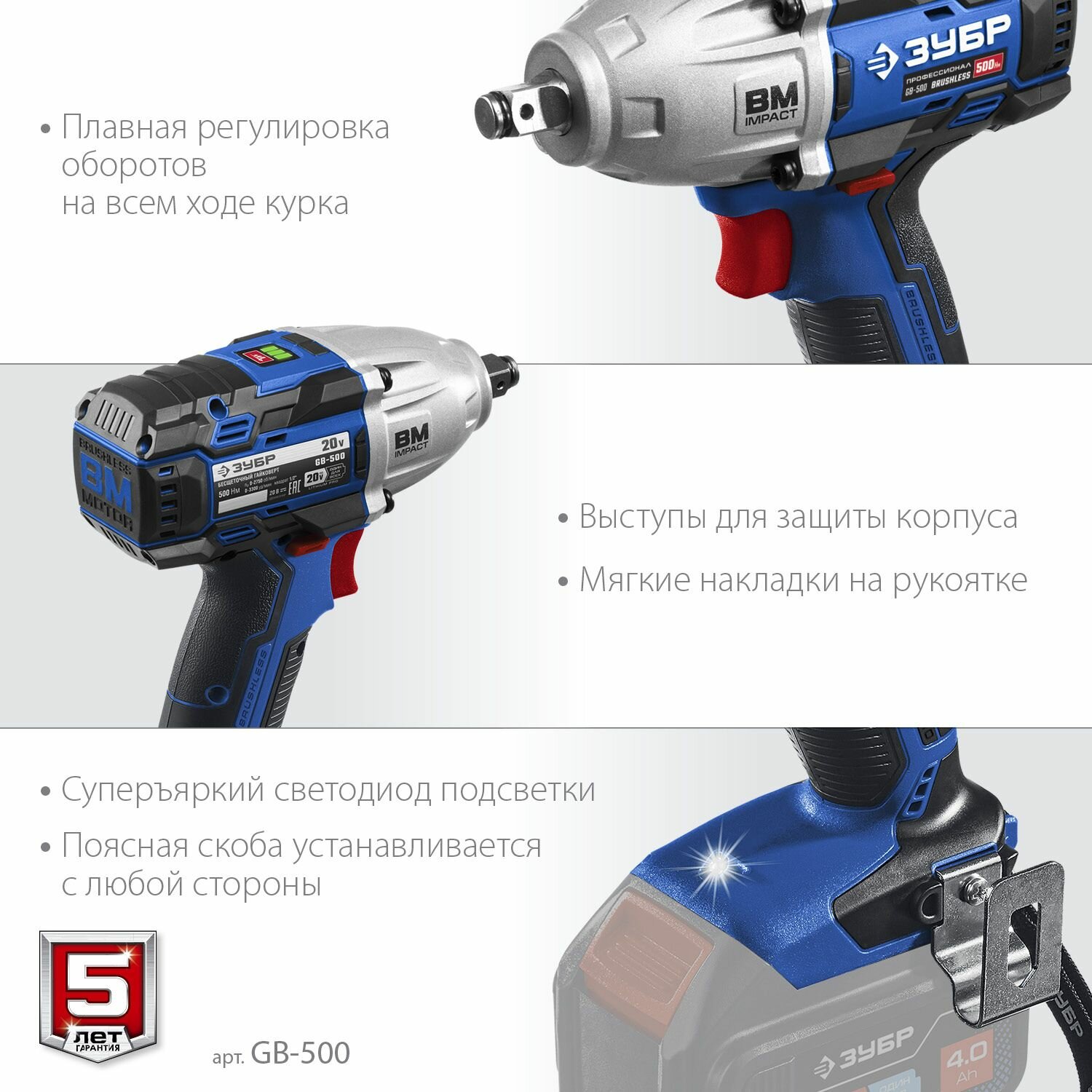 Купить Бесщеточный гайковерт ЗУБР GB-500 Профессионал, без акб