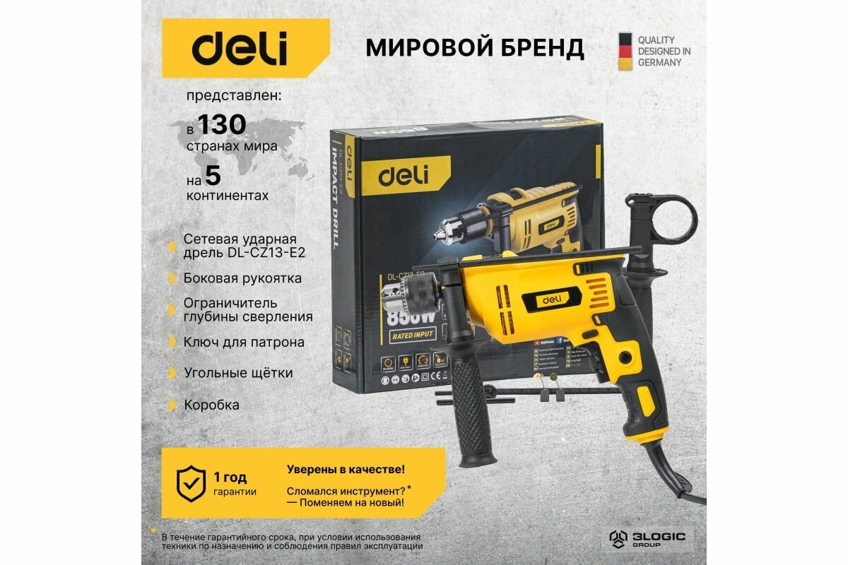 Дрель сетевая ударная Deli DL-CZ13-E2 (850Вт/3000об/мин) коробка интересное:
