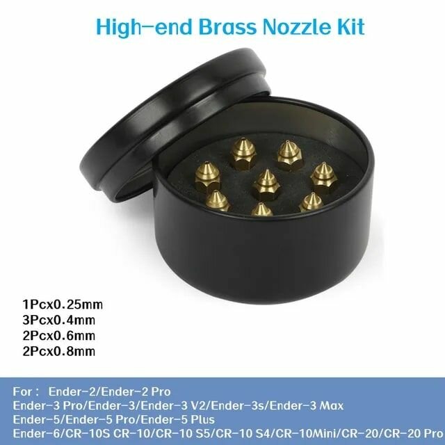 Набор латунных сопел Creality MK8 0.25, 0.4, 0.6, 0.8 мм, 8 штук. Комплект сопел для 3D принтера Creality, латунь, 8 шт. интересное: