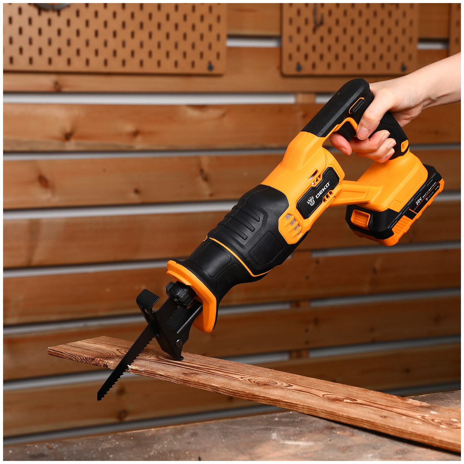 Пила сабельная аккумуляторная DEKO DKRS20-Li, 20 В, 2 Ач,2600 об/мин, ход 15 мм