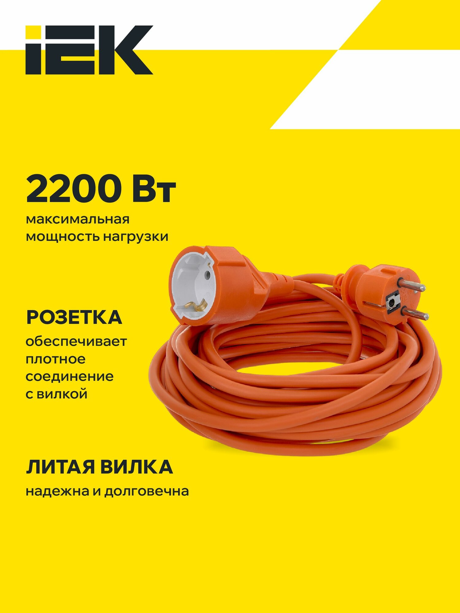 Удлинитель защищенный iEK 1 розетка с заземлением, IP20, 3 x 1 мм, 5 метров