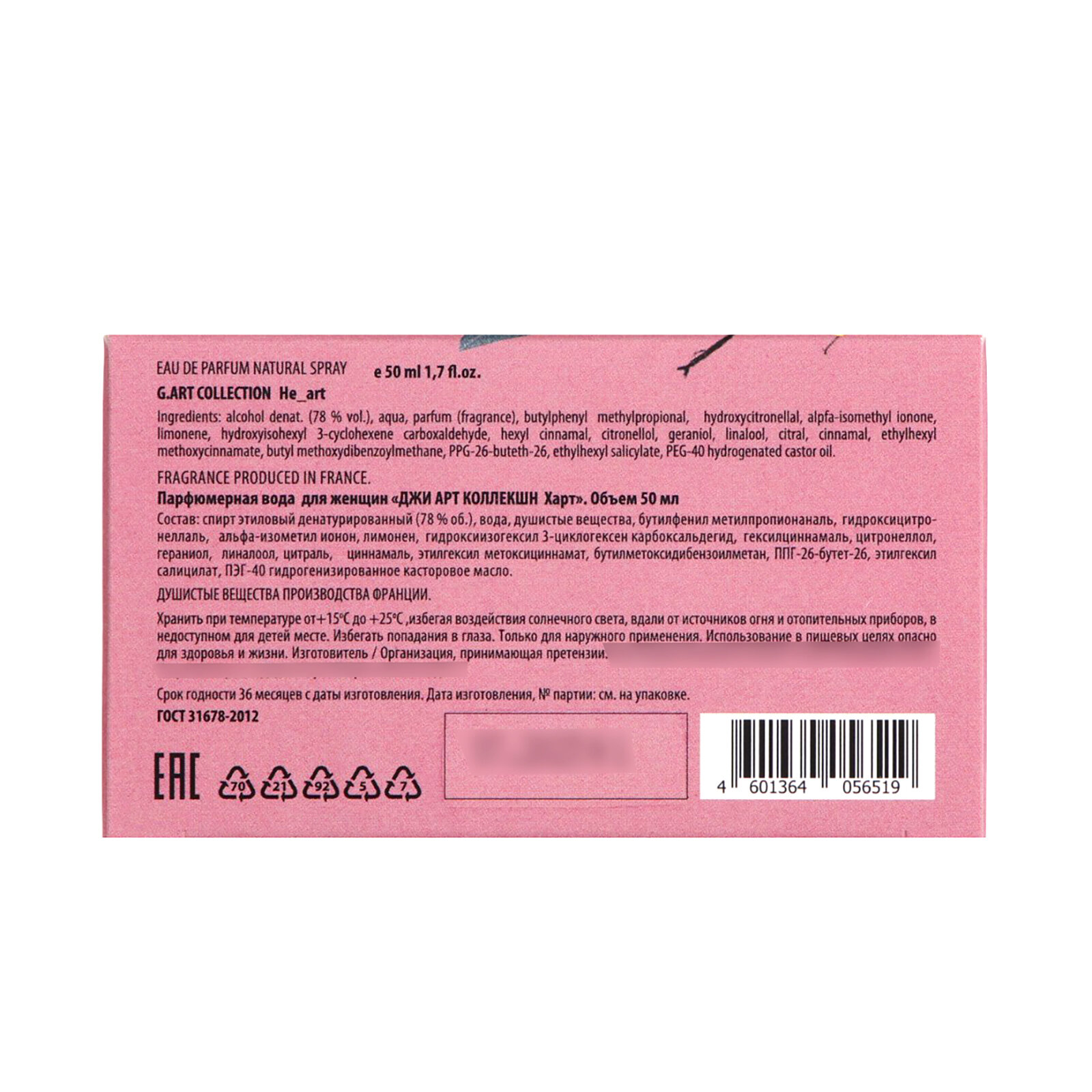 Парфюмерная вода женская G.ART Collection "He_art", 50 мл