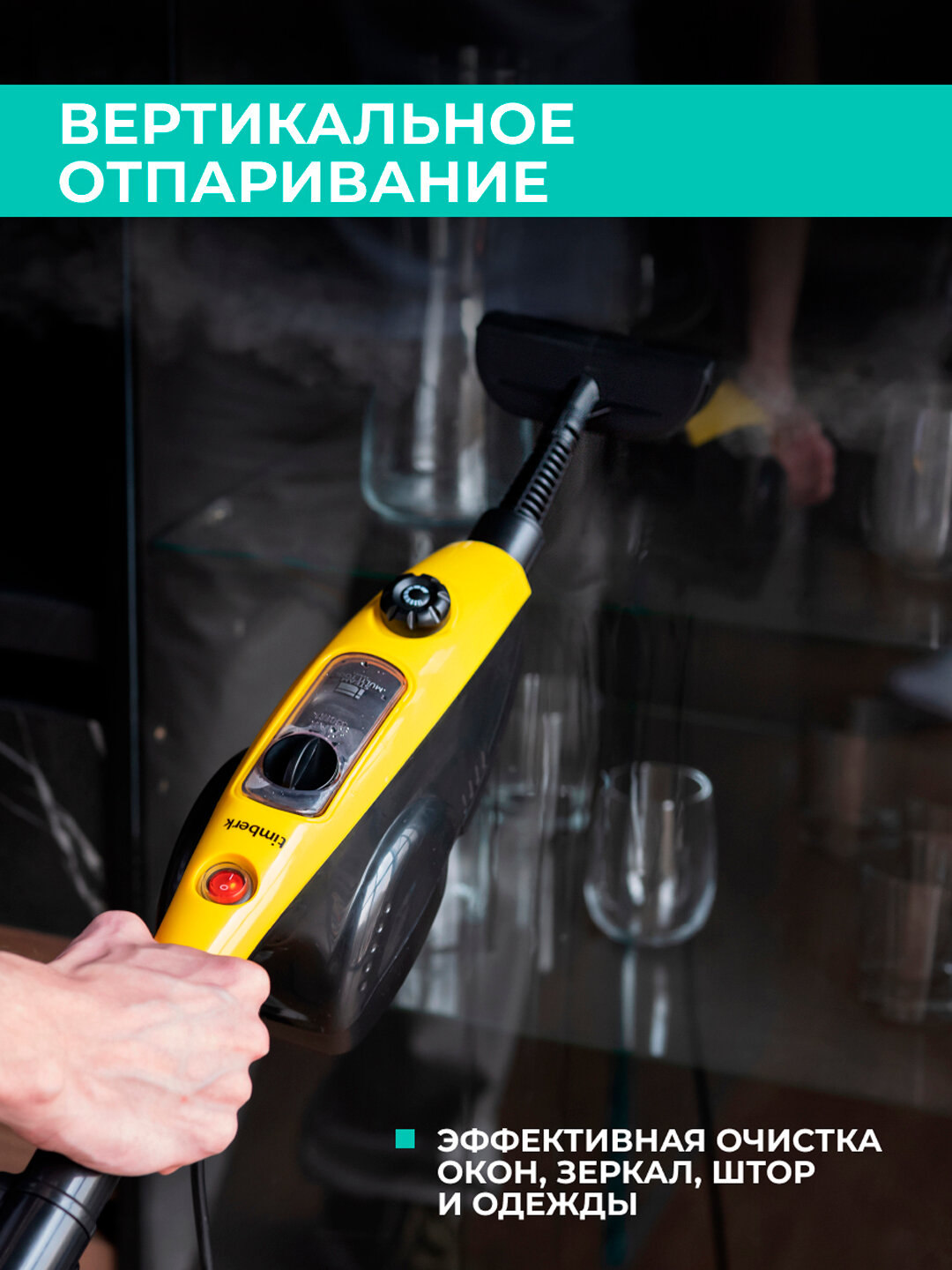 Пароочиститель Timberk T-STCV50 с 4-мя насадками, функция мойщик окон, отпариватель и очиститель интересное: