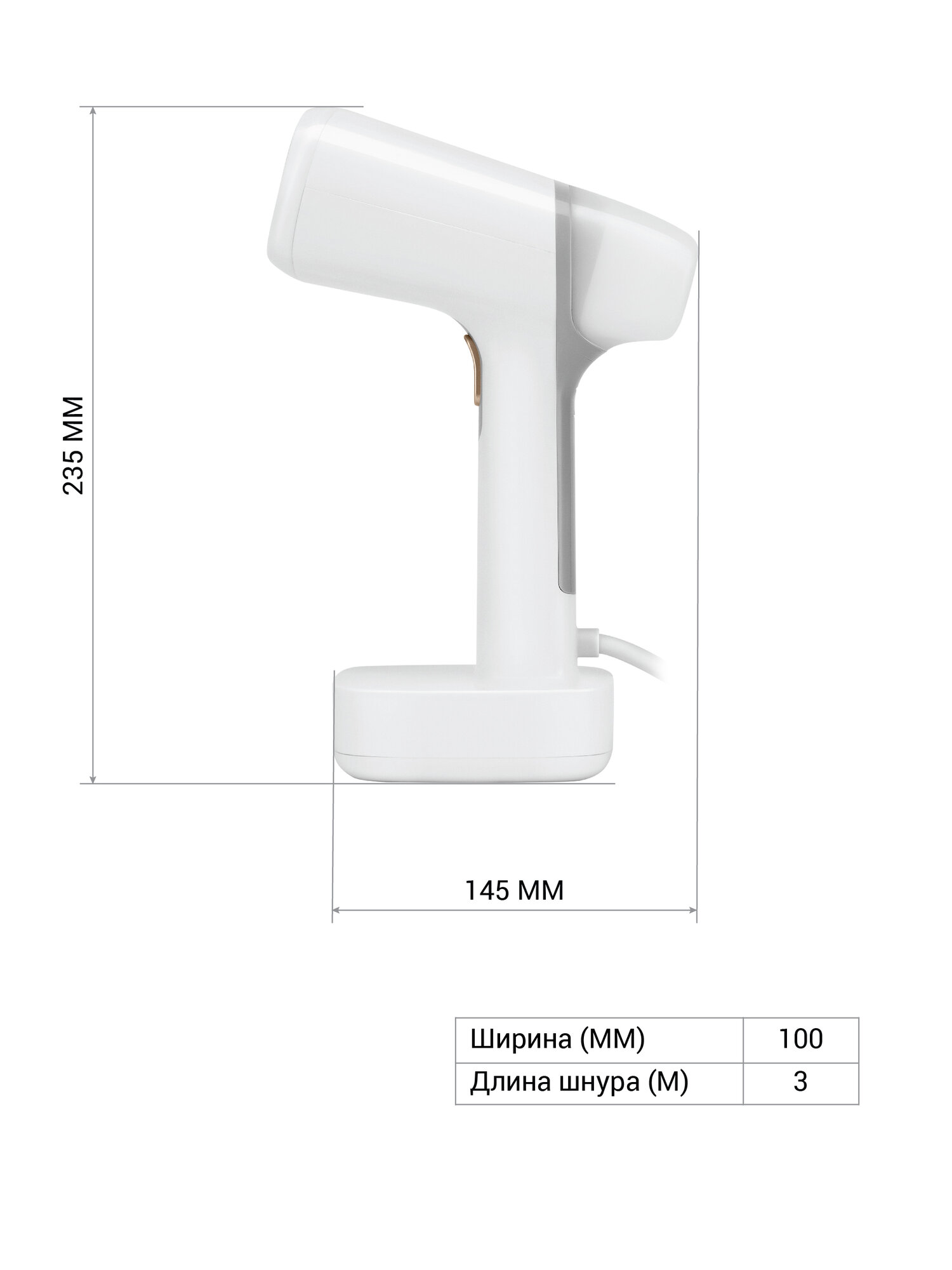 Миниатюрный и при этом мощный. В руке держать удобно. Классно, что резервуара два и маленький наполняется из большого автоматически, просто опускаешь его туда и все, никаких лишних телодвижений. И гладилка не нужна, на плечики вешаю и отпариваю.