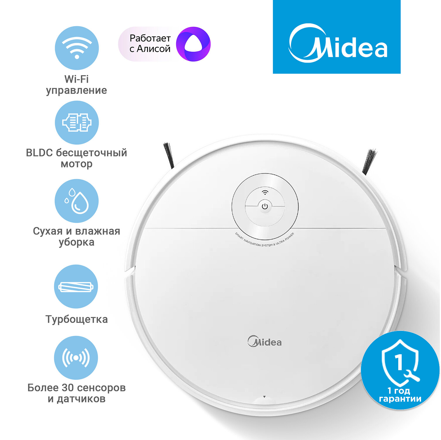 Робот-пылесос Midea VCR10W, 2600 мАч, RU версия, сухая/влажная уборка, работает с Алисой, пульт ДУ, Wi-Fi управление, HEPA фильтр, BLDC мотор, белый интересное: