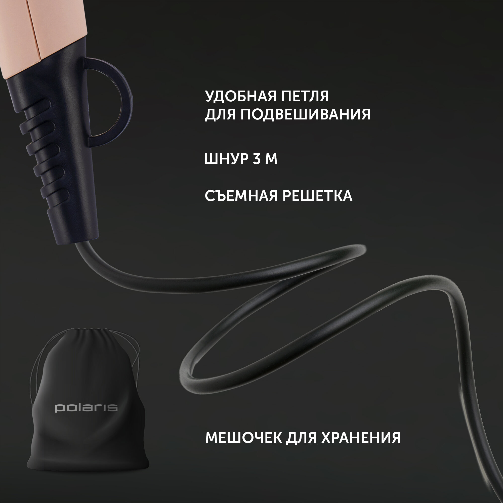Фен Polaris PHD 2600ACi Salon Hair / Серый графит