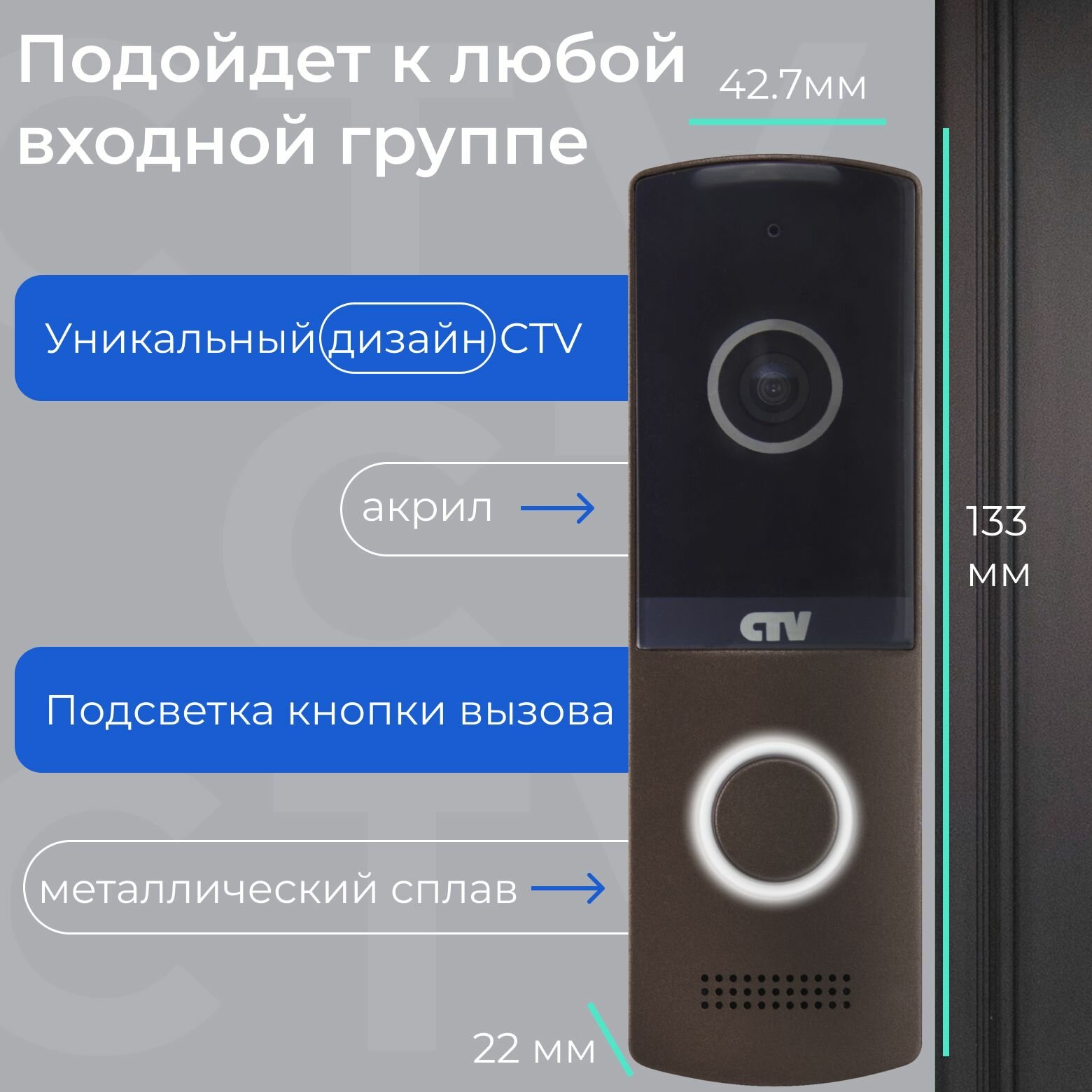 CTV D4003NG (гавана) - вызывная панель видеодомофона для квартиры, дома или офиса объектив 2,5 мм, разрешение видеокамеры 1920x1080 Full HD, ИК-подсветка "День/Ночь"
