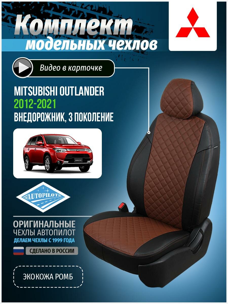 Чехлы для Mitsubishi Outlander 3 2012-2020 Автопилот Шоколадный Экокожа с ромбом mi-ou-o3-chesho-r