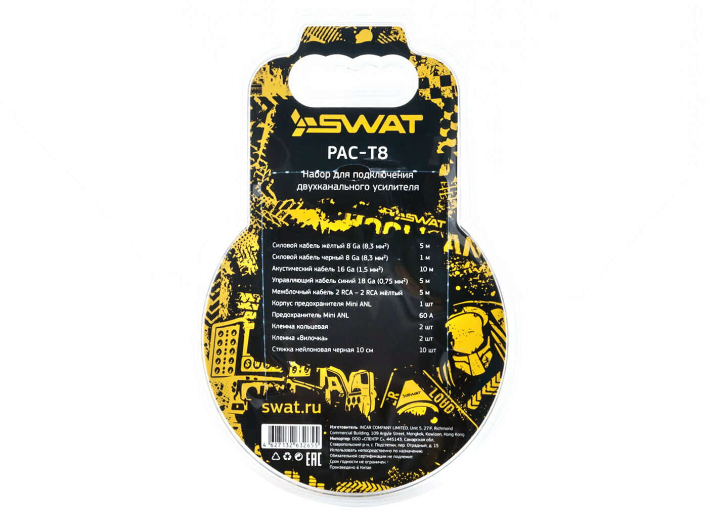 Аудио комплект для подключения 2х канального усилителя swat pac-t8 8ga