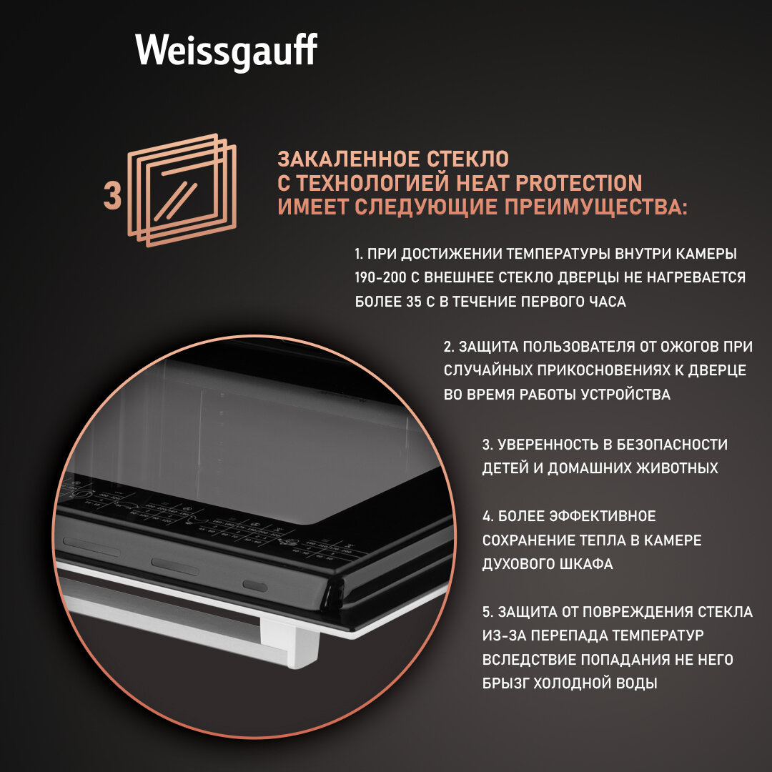 Добавлю к описанию: панель управления стеклянная, есть кольцевой Тен, два тена гриля. Служба сервиса и гарантии weissgauf на высоте!!! Духовка при покупке оказалась без уплотнительной резинки двери - завод в Пензе не досмотрел... Служба сервиса и гарантии weissgauf , после оформления заявки на сайте доставили быстро! Спасибо им. Покупкой доволен, рекомендую.