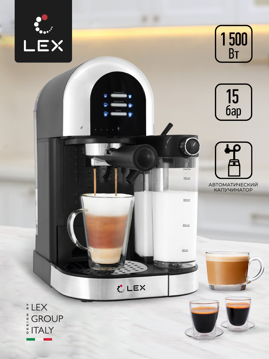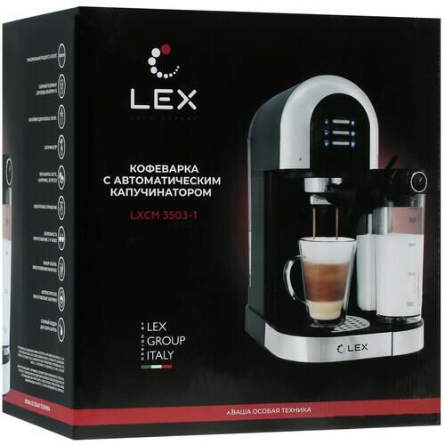 Кофеварка эспрессо для молотого кофе LEX LXCM 3503-1 с автокапучинатором