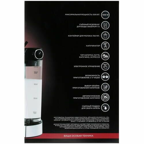 | Тип напитка | горячий шоколад / капучино / латте / эспрессо |