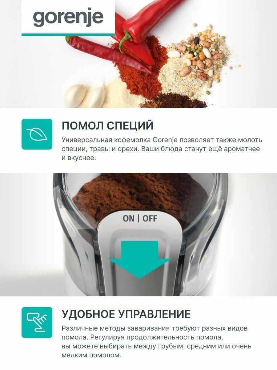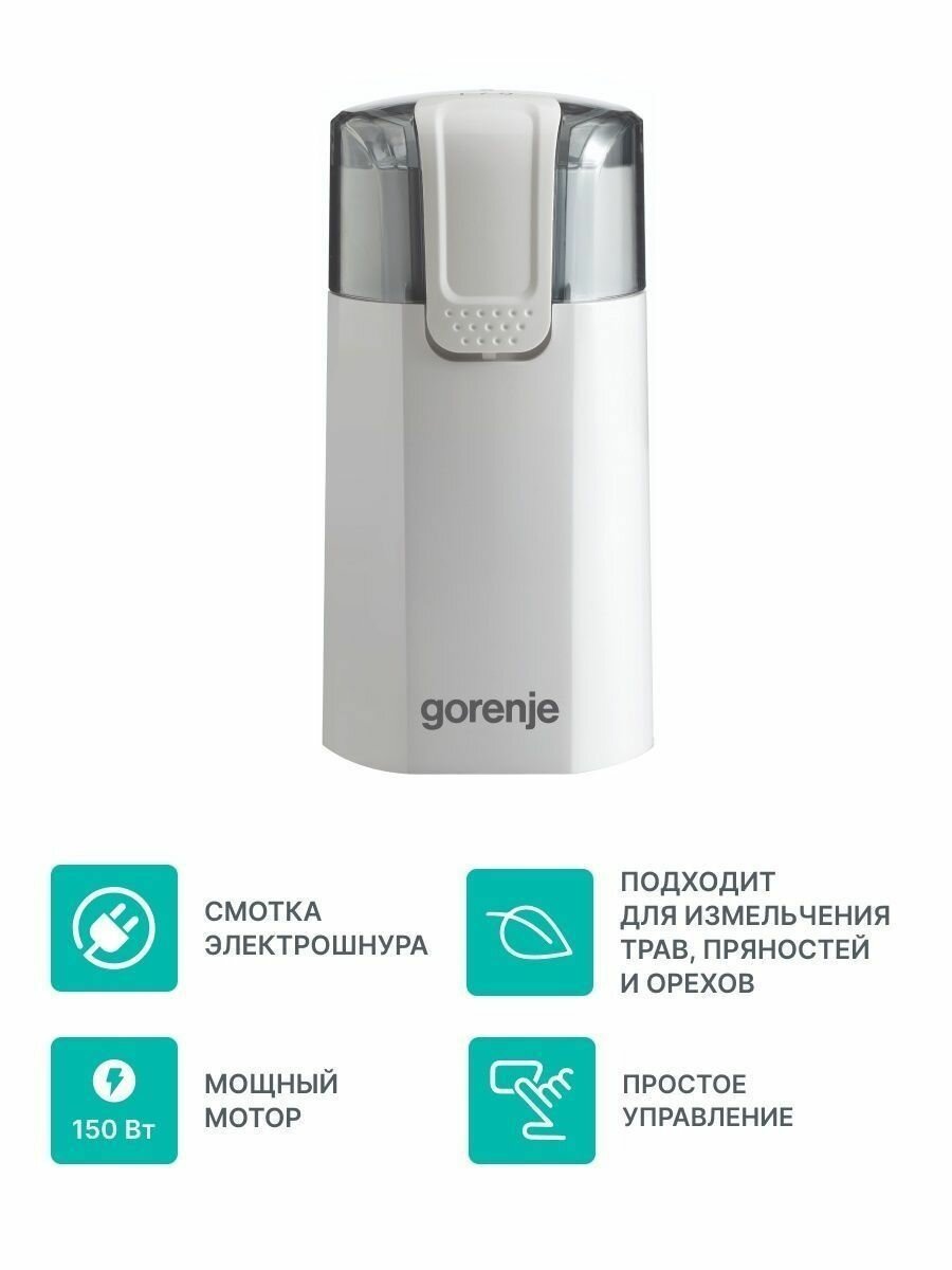Кофемолка Gorenje SMK150WI 150Вт сист.помол.:одинарный нож вместим.:60гр серый/белый