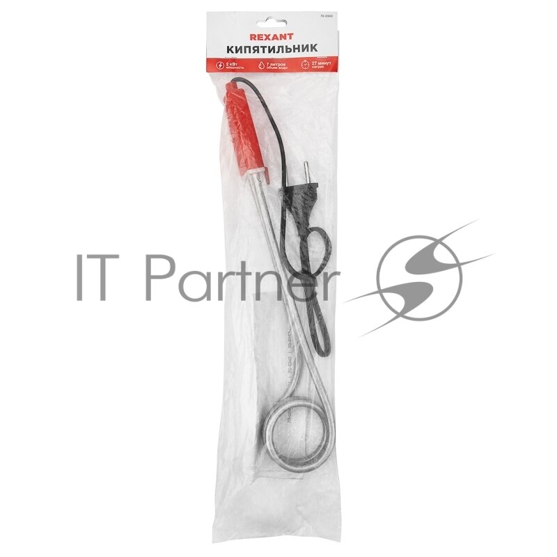 Электрокипятильник REXANT 2000 Вт ТЭН 27,70 см, Длина шнура 65 см, упаковка пакет
