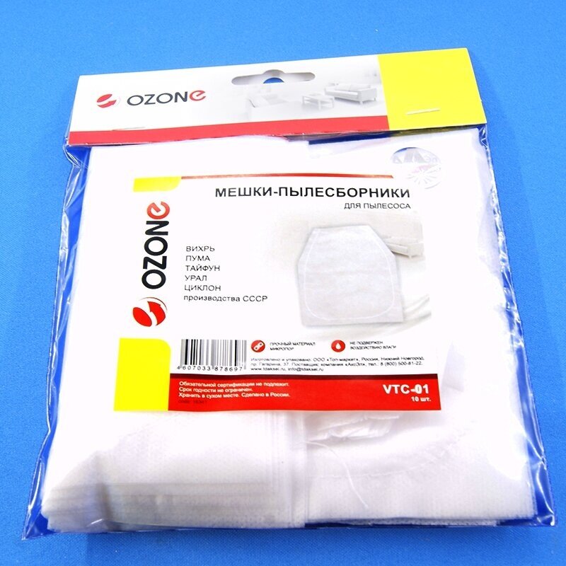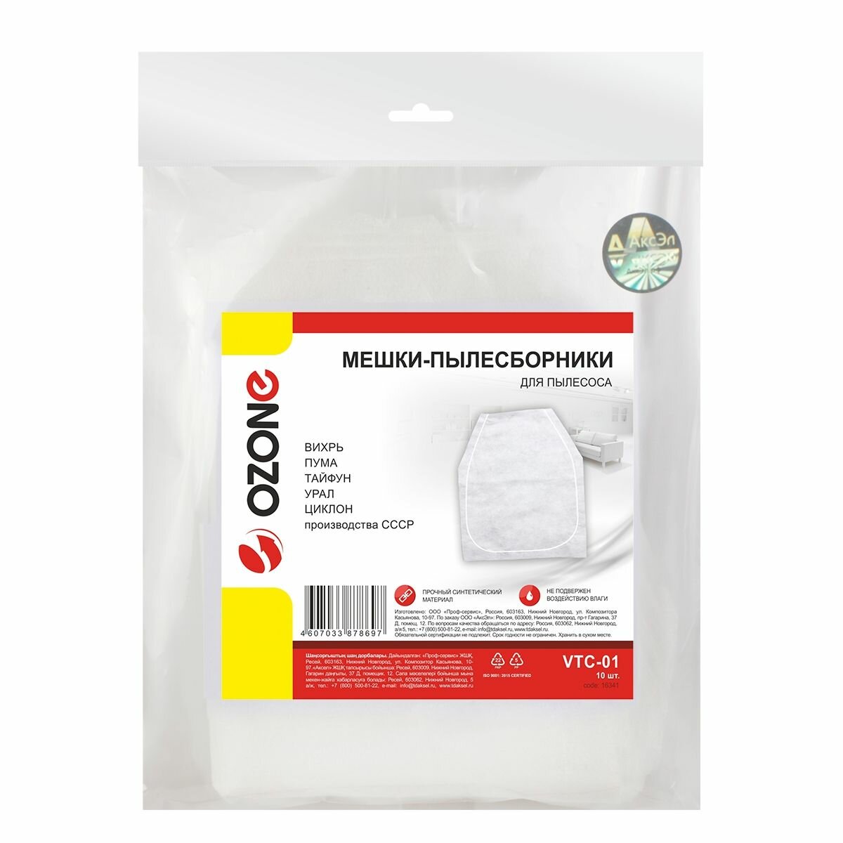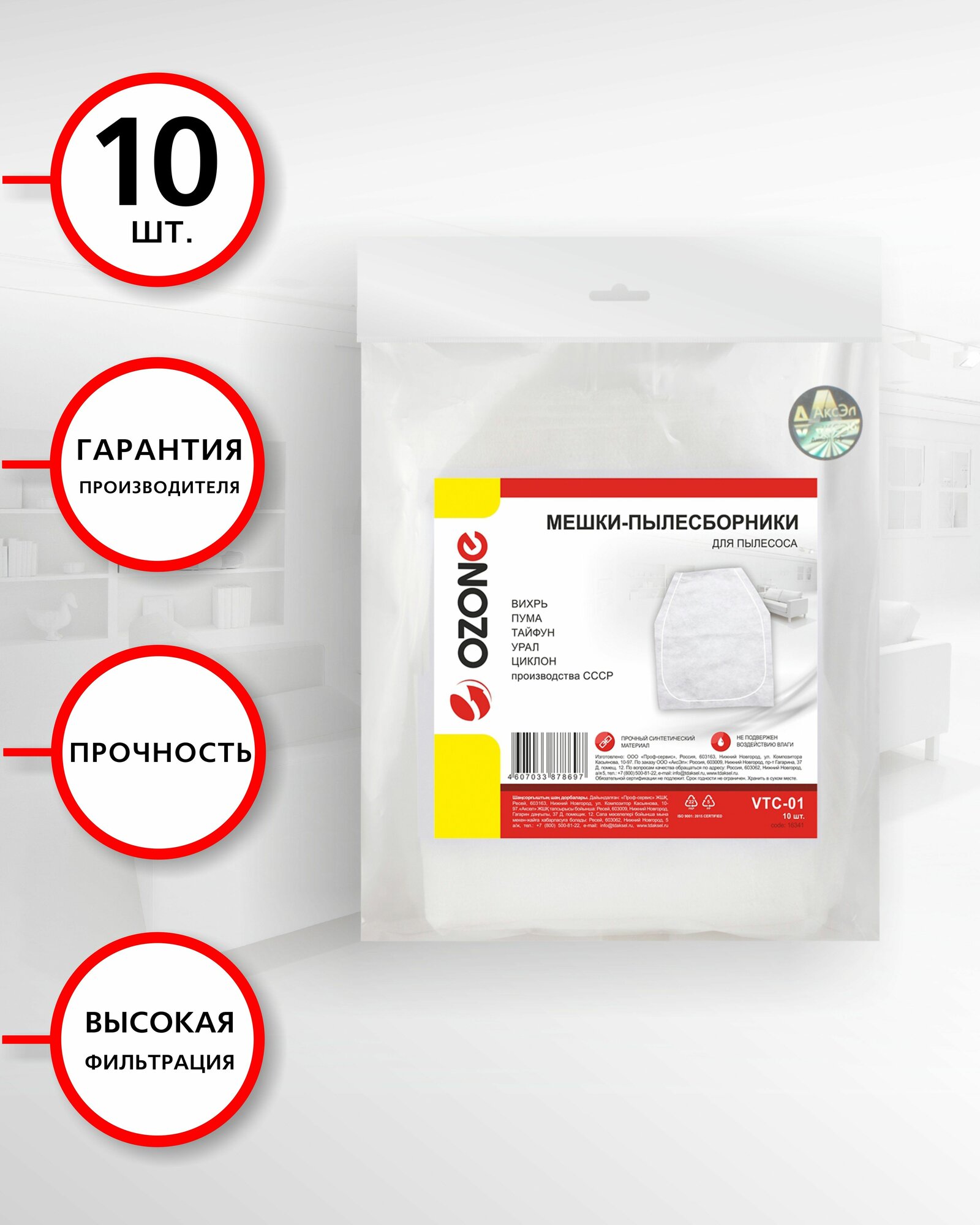 Купить Синтетические мешки для пылесоса Ozone VTC-01, 10 шт, совместимы с моделями Вихрь, Пума, Тайфун, Урал, Циклон (СССР)