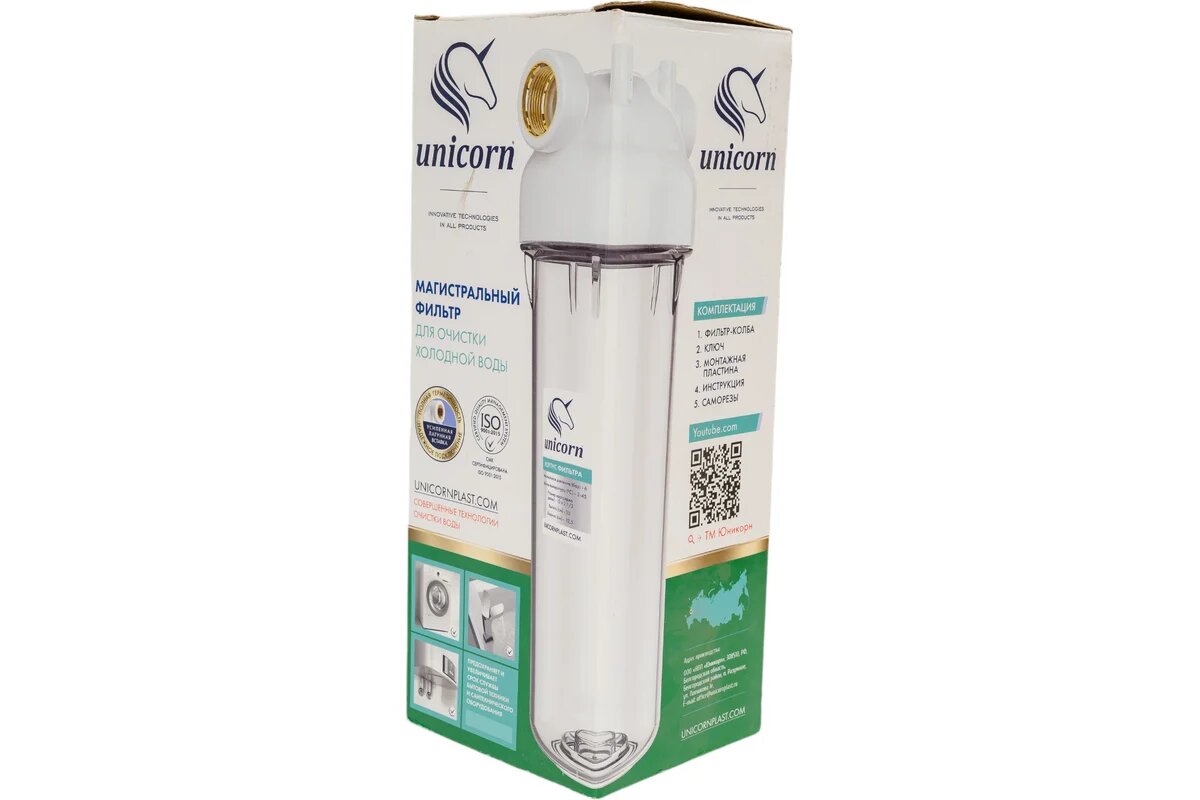 Фильтр для воды, магистральный фильтр для холодной воды 10" с прозрачным корпусом Unicorn KSBP 1/2"