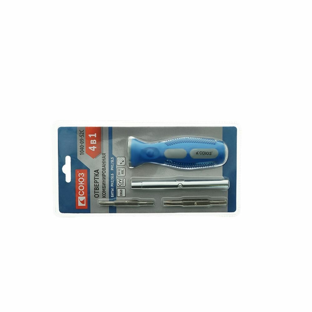 Отвёртка-перевёртыш универсальная Союз "1040-09-S2C", 4 предмета